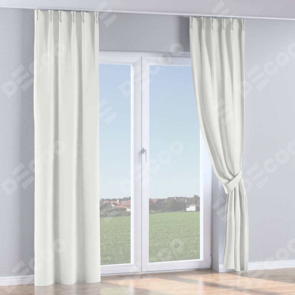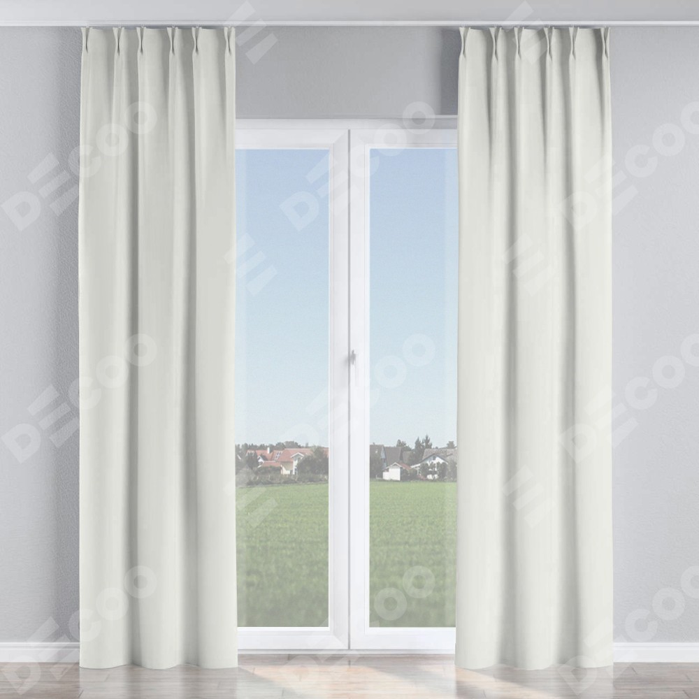 Комплект прямых штор, от производителя «Cortin», пошиты из ткани канвас молочный, артикул ткани v-93. С изнаночной стороны в верхней части штор пристрачивается шторная лента с декоративными складками «Кустик». Для создания элегантных складок прямые шторы шьются по стандарту с коэффициентом 1:2 (на 100 см. ширины проёма 200 см. ширины ткани).