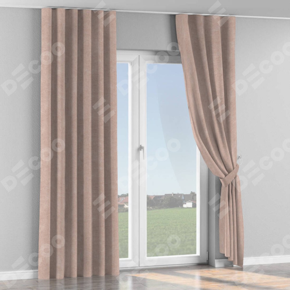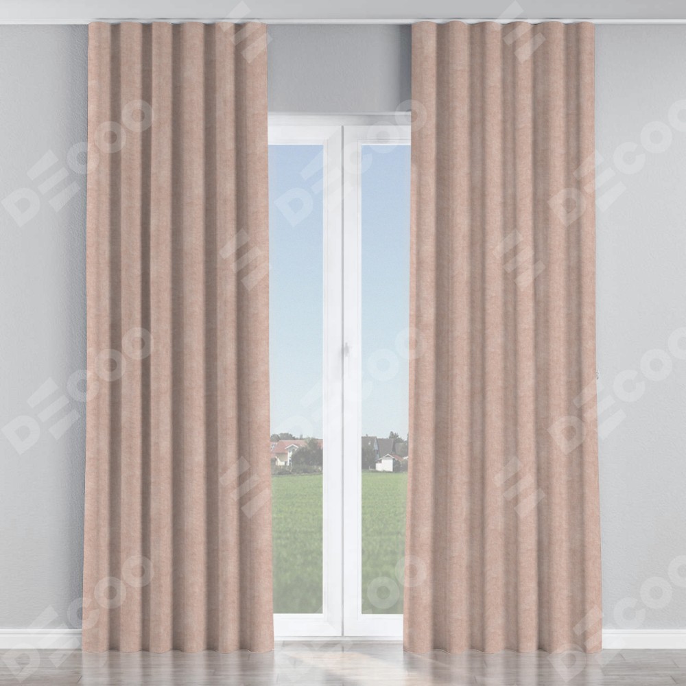 Комплект прямых штор, от производителя «Cortin», пошиты из ткани канвас пудровый, артикул ткани v-35. С изнаночной стороны в верхней части штор пристрачивается шторная лента с декоративными складками «Волна». Для создания элегантных складок прямые шторы шьются по стандарту с коэффициентом 1:2 (на 100 см. ширины проёма 200 см. ширины ткани).