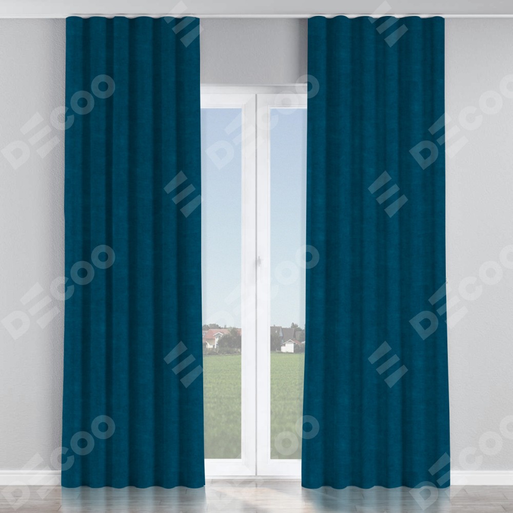 Комплект прямых штор, от производителя «Cortin», пошиты из ткани канвас синий, артикул ткани v-573. С изнаночной стороны в верхней части штор пристрачивается шторная лента с декоративными складками «Волна». Для создания элегантных складок прямые шторы шьются по стандарту с коэффициентом 1:2 (на 100 см. ширины проёма 200 см. ширины ткани).