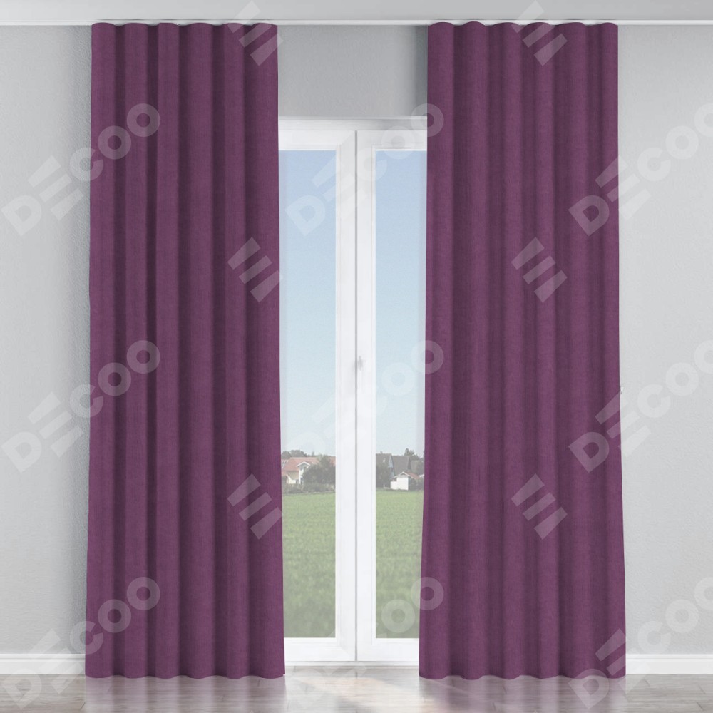 Комплект прямых штор, от производителя «Cortin», пошиты из ткани канвас сиреневый, артикул ткани v-98. С изнаночной стороны в верхней части штор пристрачивается шторная лента с декоративными складками «Волна». Для создания элегантных складок прямые шторы шьются по стандарту с коэффициентом 1:2 (на 100 см. ширины проёма 200 см. ширины ткани).