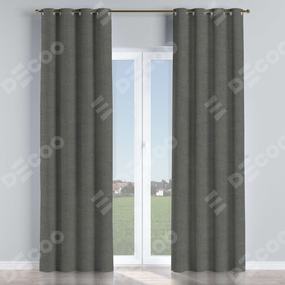 Комплект прямых штор, от производителя «Cortin», пошиты из ткани канвас тёмно-серый, артикул ткани v-340. Данная модель пошита на люверсах, комплектуется на выбор круглым карнизом и подходит для монтажа на стену или потолок. Прямые шторы на люверсах шьются по стандарту с коэффициентом 1/2 (на 100 см. ширины проёма 200 см. ширины ткани), отличительным преимуществом данной модели является простой способ монтажа. Достаточно повесить ее на трубу и штора готова!