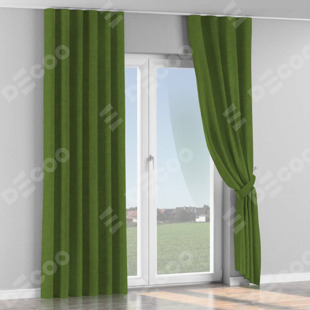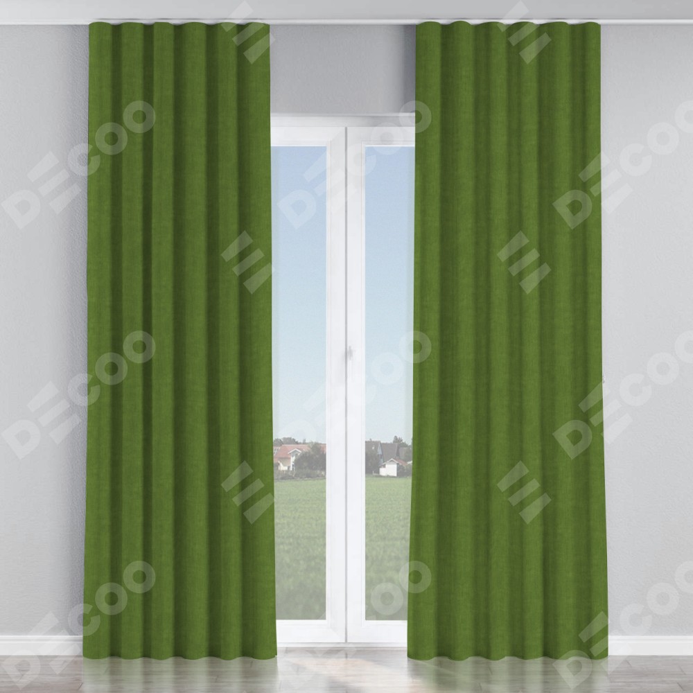 Комплект прямых штор, от производителя «Cortin», пошиты из ткани канвас трава, артикул ткани v-473. С изнаночной стороны в верхней части штор пристрачивается шторная лента с декоративными складками «Волна». Для создания элегантных складок прямые шторы шьются по стандарту с коэффициентом 1:2 (на 100 см. ширины проёма 200 см. ширины ткани).