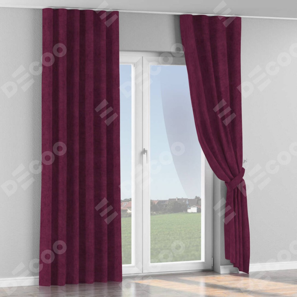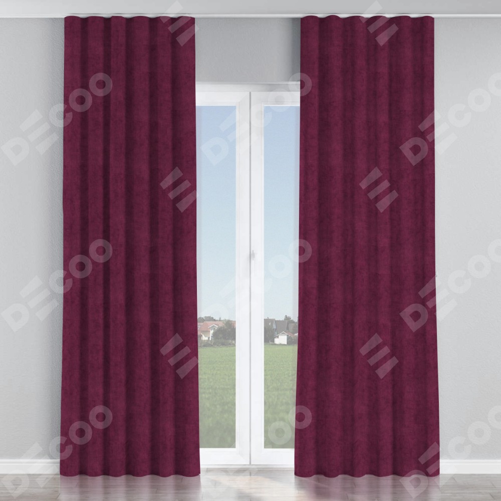 Комплект прямых штор, от производителя «Cortin», пошиты из ткани канвас фиолетовый, артикул ткани v-99. С изнаночной стороны в верхней части штор пристрачивается шторная лента с декоративными складками «Волна». Для создания элегантных складок прямые шторы шьются по стандарту с коэффициентом 1:2 (на 100 см. ширины проёма 200 см. ширины ткани).
