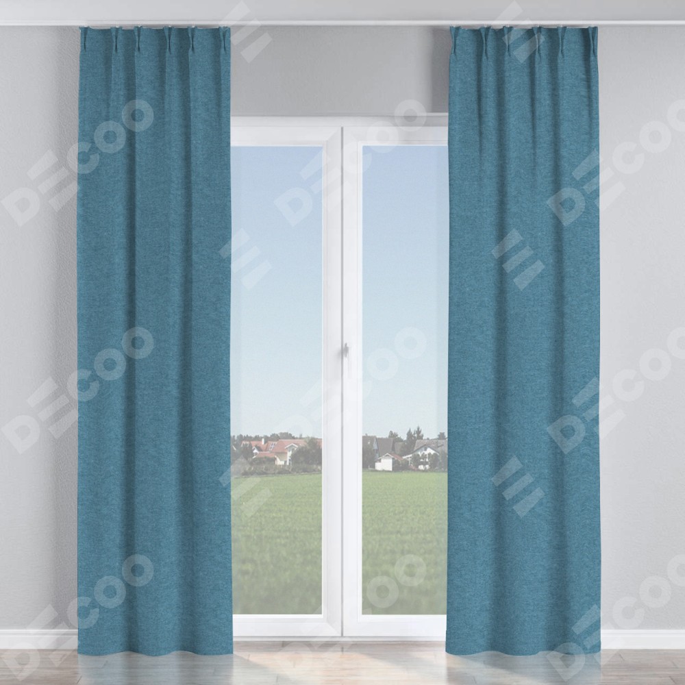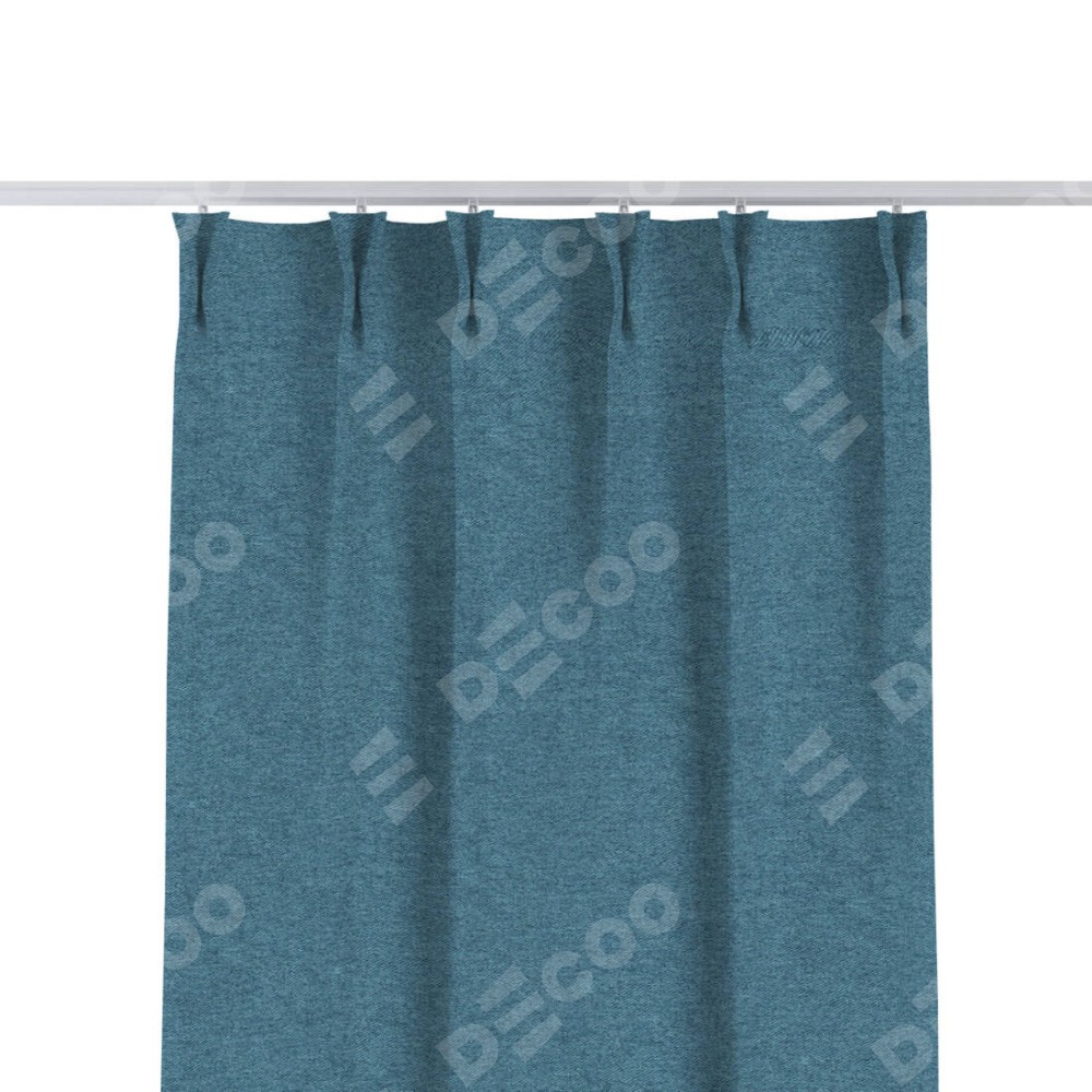 Комплект прямых штор, от производителя «Cortin», пошиты из ткани твид блэкаут светло-синий, артикул ткани 90935. С изнаночной стороны в верхней части штор пристрачивается шторная лента с декоративными складками «Кустик». Для создания элегантных складок прямые шторы шьются по стандарту с коэффициентом 1:2 (на 100 см. ширины проёма 200 см. ширины ткани).