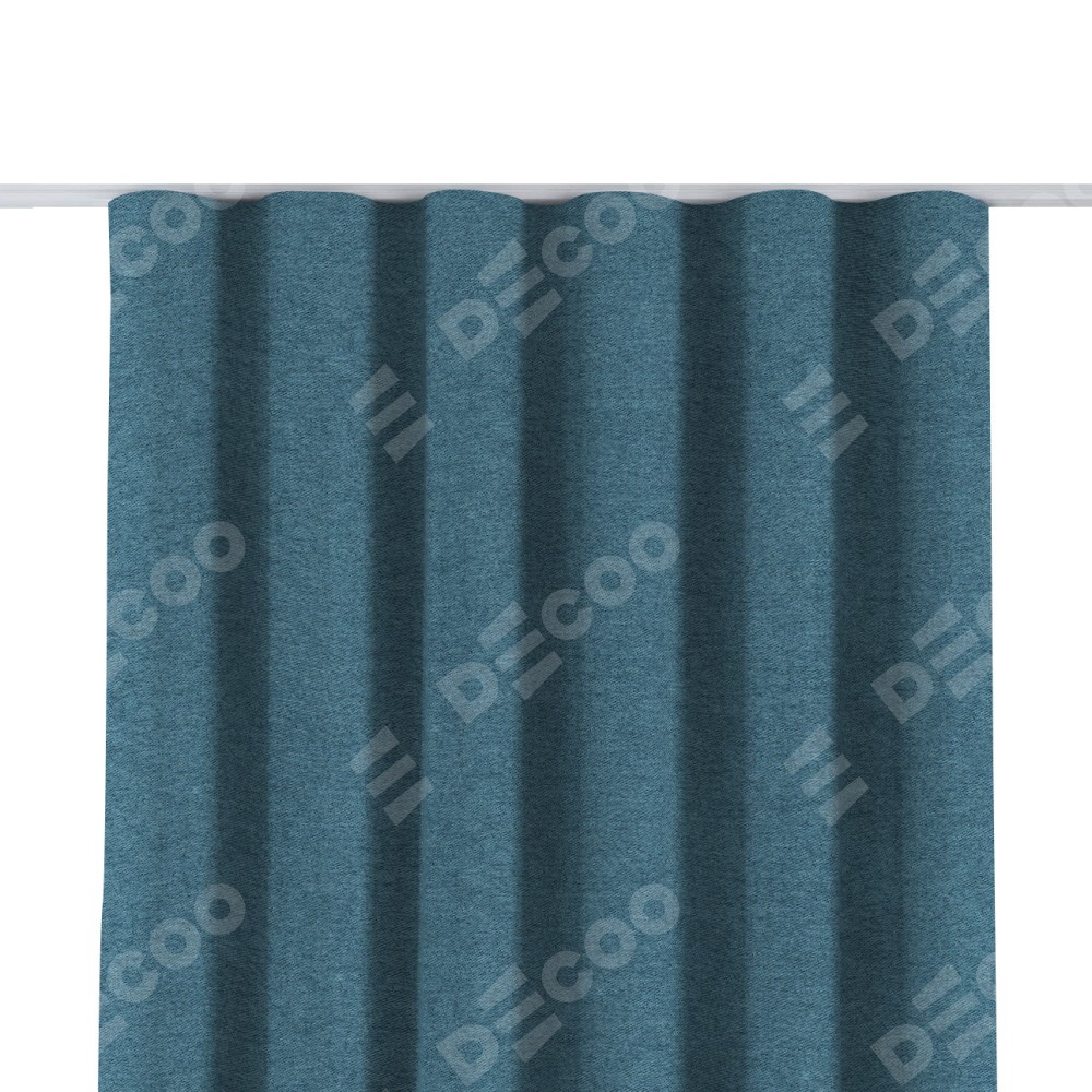 Комплект прямых штор, от производителя «Cortin», пошиты из ткани твид блэкаут светло-синий, артикул ткани 90935. С изнаночной стороны в верхней части штор пристрачивается шторная лента с декоративными складками «Волна». Для создания элегантных складок прямые шторы шьются по стандарту с коэффициентом 1:2 (на 100 см. ширины проёма 200 см. ширины ткани).