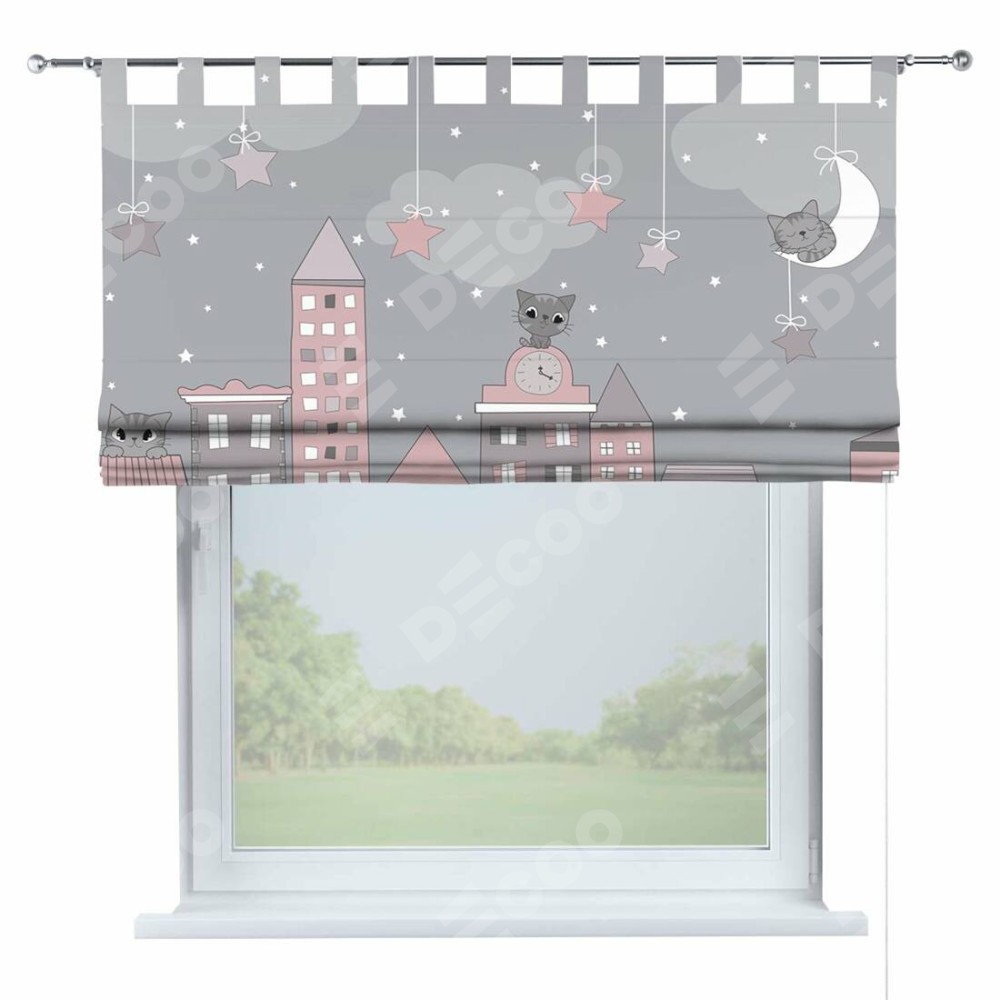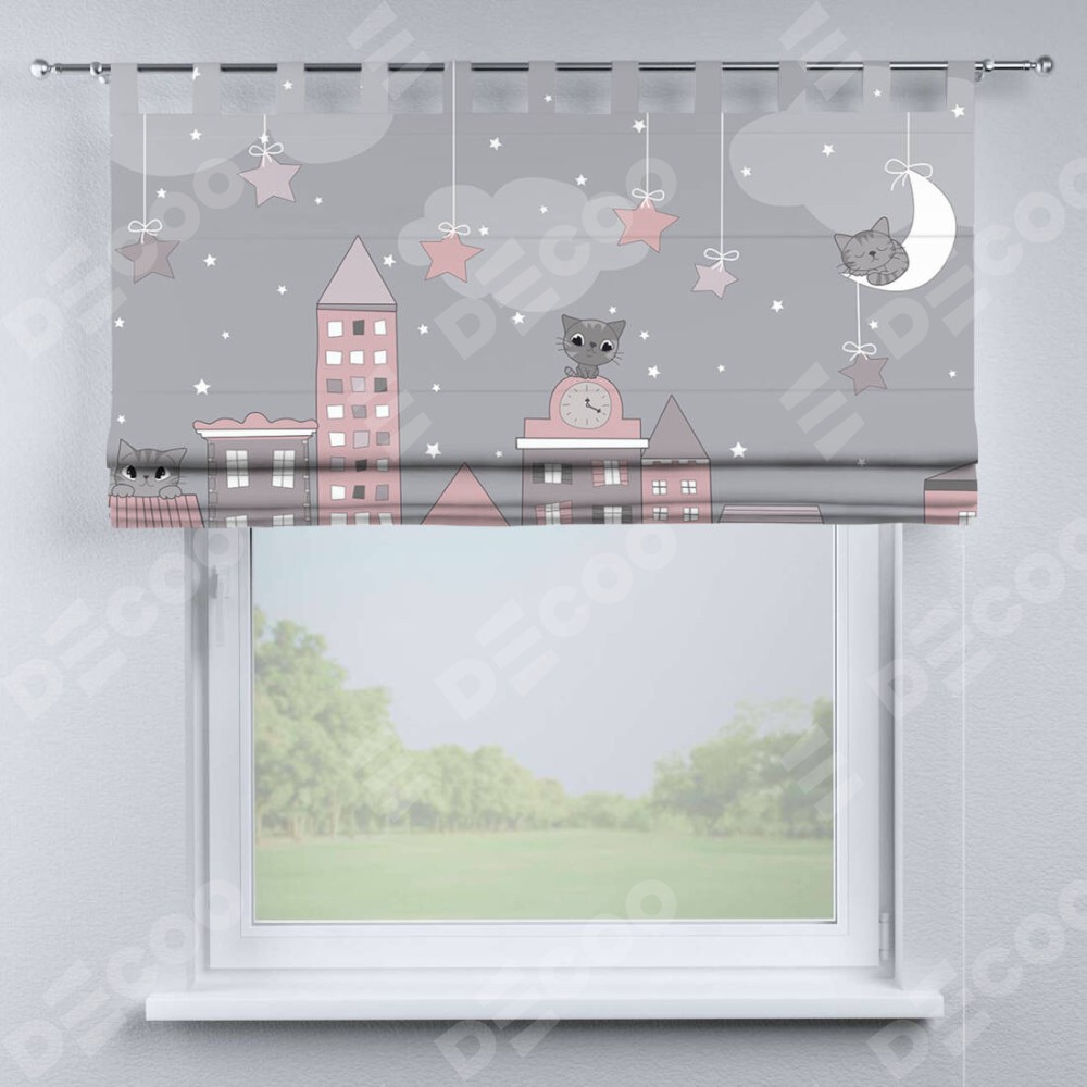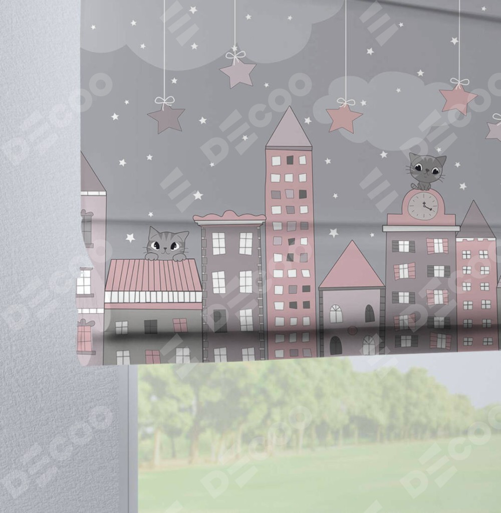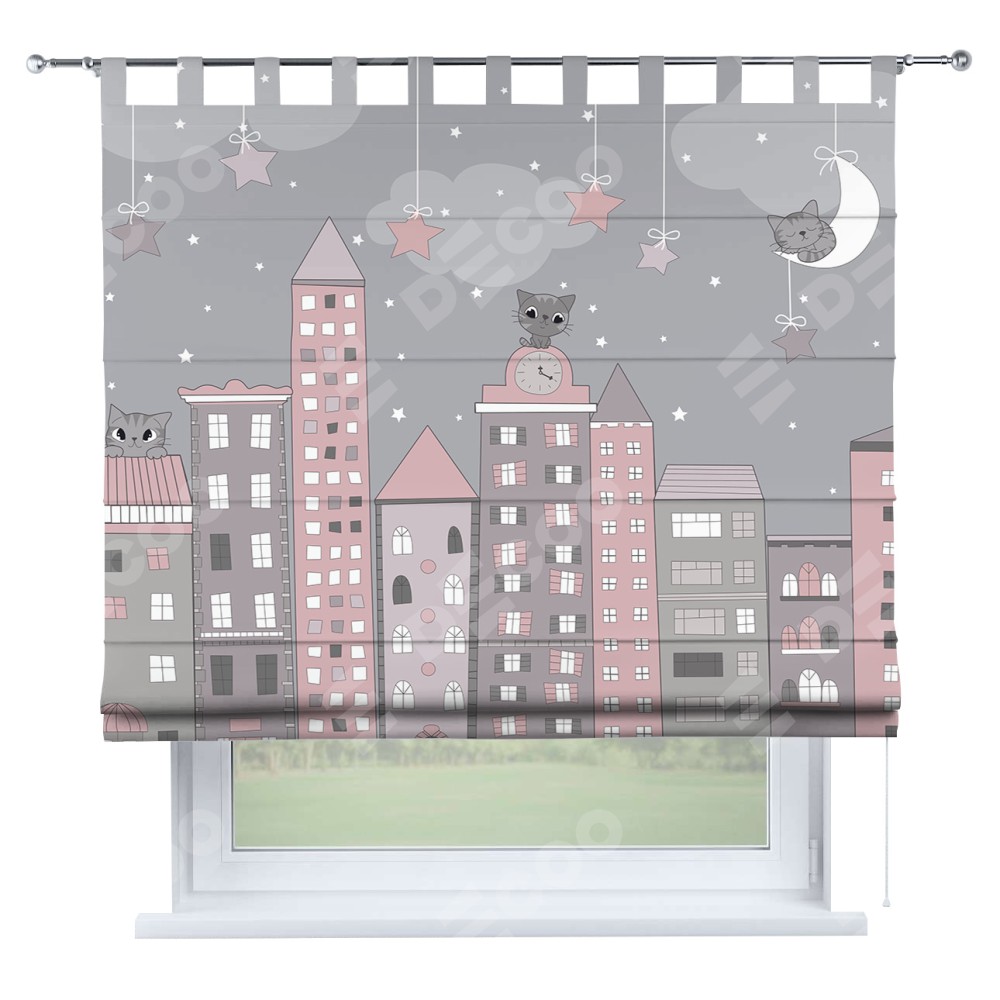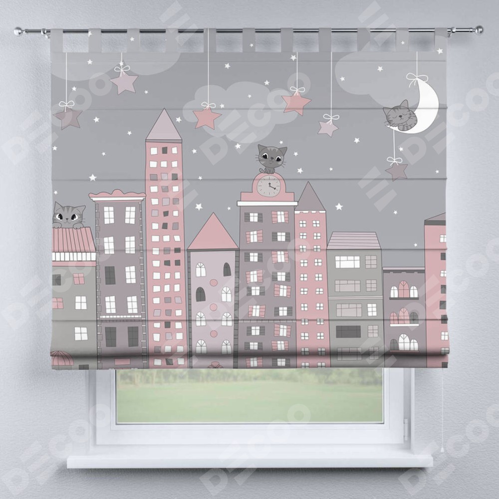 Римская штора производителя «Cortin», используется для проёма, пошита из ткани блэкаут с нанесением сублимационной печати «Вечерний город». Данная модель пошита на петлях, комплектуется на выбор круглым карнизом и подходит для монтажа на стену. Римская штора на петлях имеет простую систему регулировки высоты, отличительным преимуществом данной модели является простой способ монтажа. Достаточно повесить ее на трубу и штора готова!