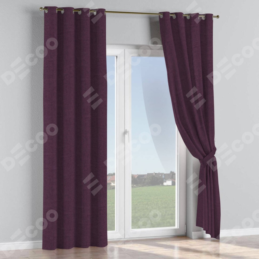 Комплект прямых штор, от производителя «Cortin», пошиты из ткани лён димаут фиолетовый, артикул ткани 16267. Данная модель пошита на люверсах, комплектуется на выбор круглым карнизом и подходит для монтажа на стену или потолок. Прямые шторы на люверсах шьются по стандарту с коэффициентом 1/2 (на 100 см. ширины проёма 200 см. ширины ткани), отличительным преимуществом данной модели является простой способ монтажа. Достаточно повесить ее на трубу и штора готова!