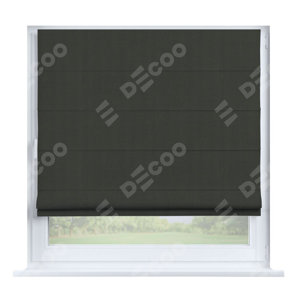 Римская штора производителя «Cortin», устанавливается на створку окна, пошита из ткани блэкаут однотонный дымчато-серый, артикул 91571−1. Штора шьётся по индивидуальным размерам, для данного типа римской шторы возможная ширина от 35 до 150 см., высота до 250 см.