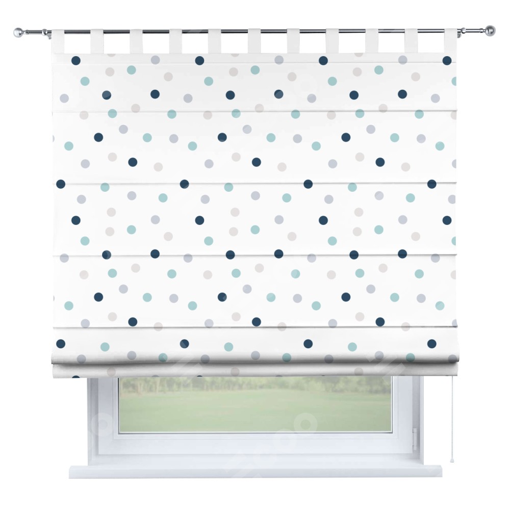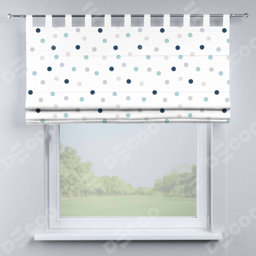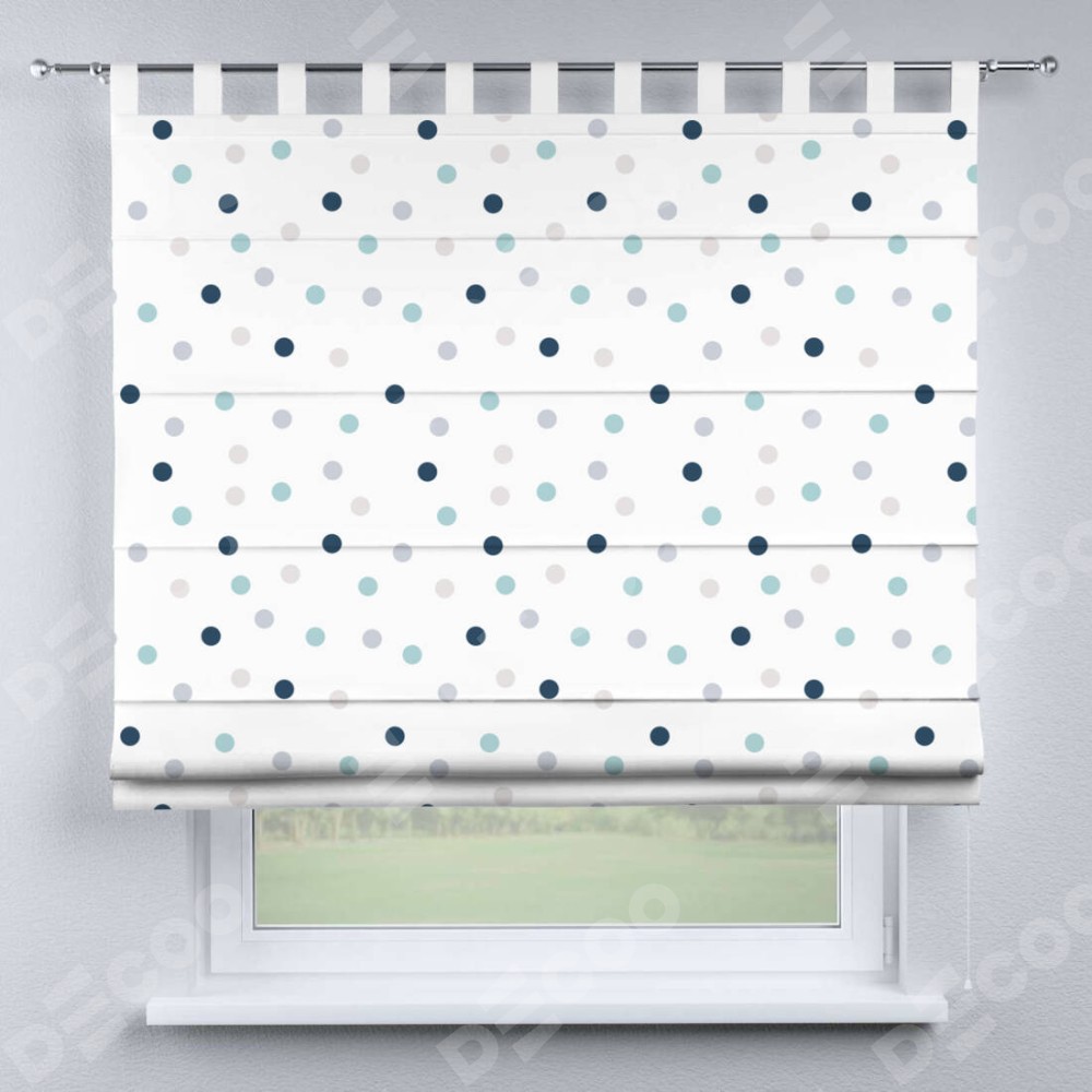Римская штора производителя «Cortin», используется для проёма, пошита из ткани блэкаут с нанесением сублимационной печати «Точки». Данная модель пошита на петлях, комплектуется на выбор круглым карнизом и подходит для монтажа на стену. Римская штора на петлях имеет простую систему регулировки высоты, отличительным преимуществом данной модели является простой способ монтажа. Достаточно повесить ее на трубу и штора готова!