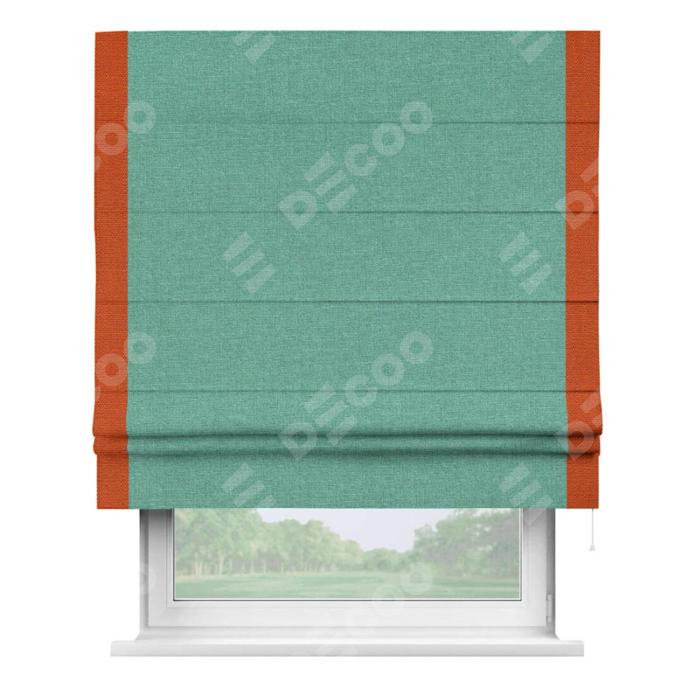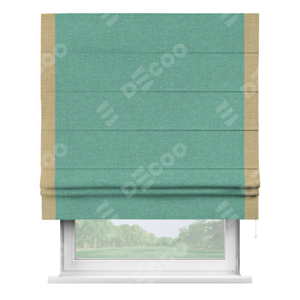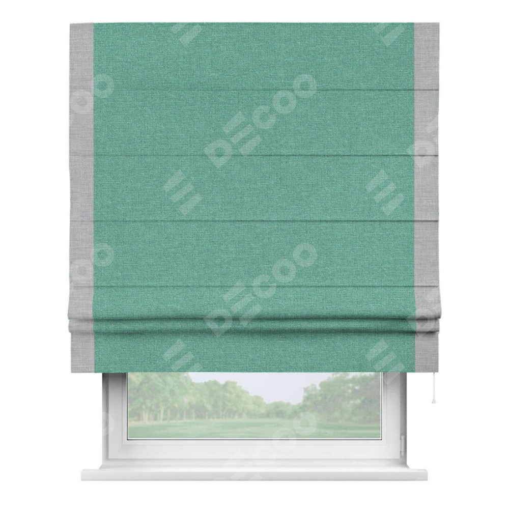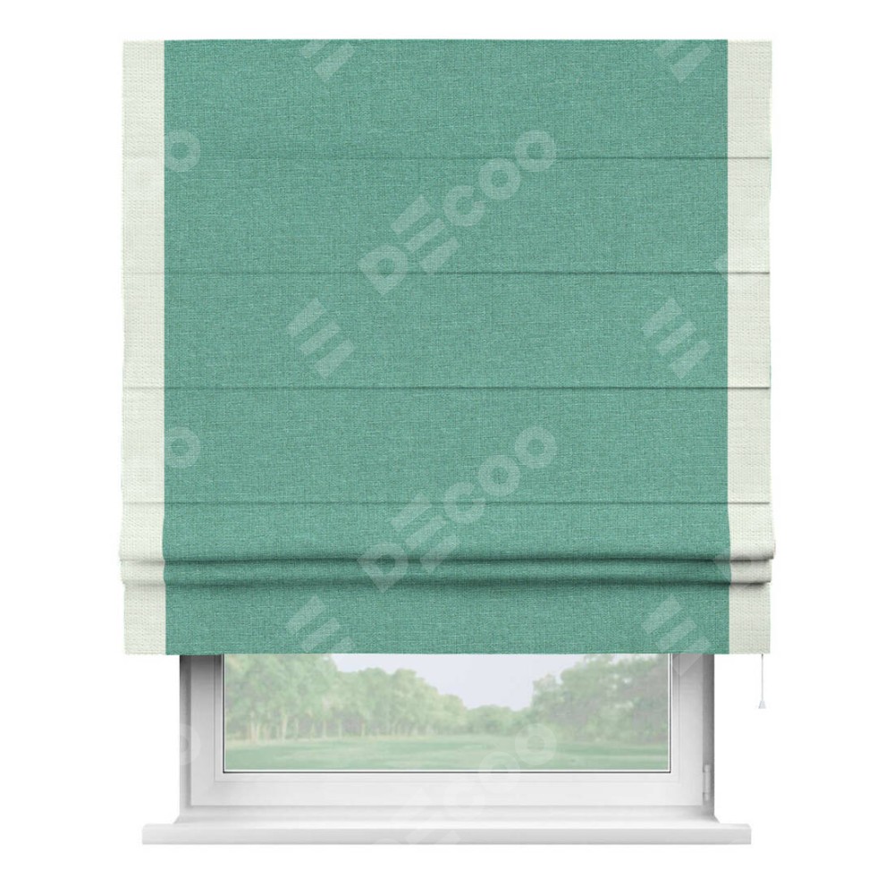 Римская штора «Кортин» с кантом Стрим Дуо, для проема, лён светло-бирюзовый