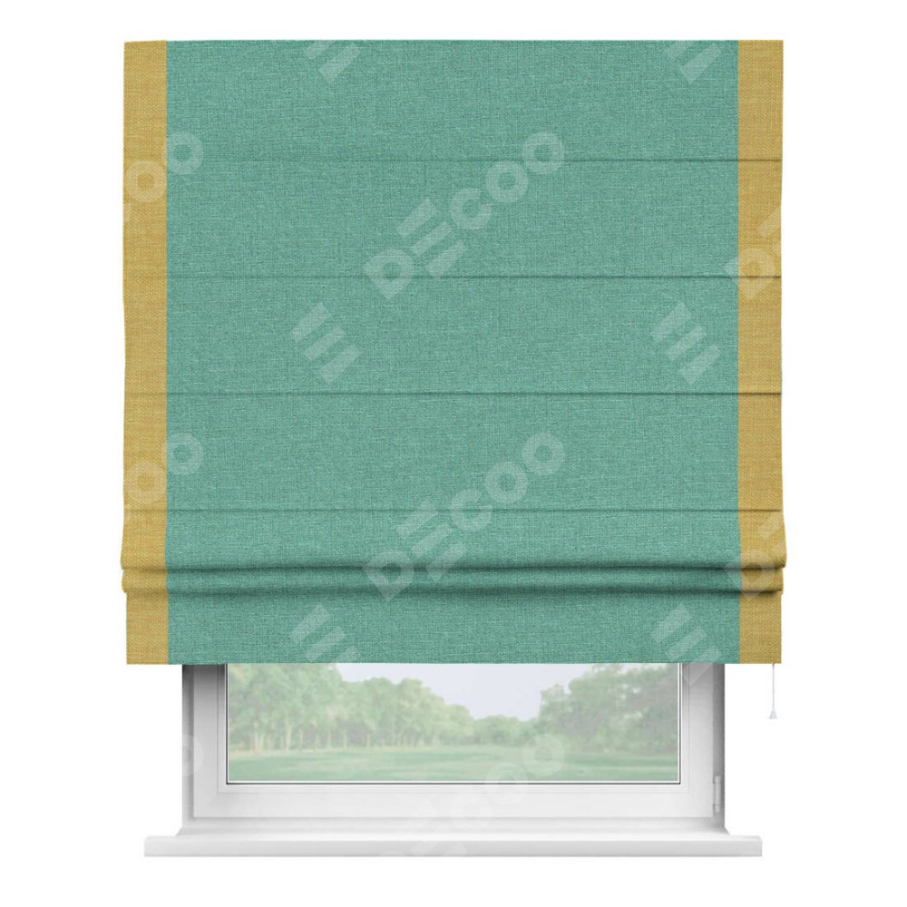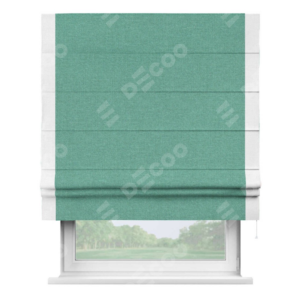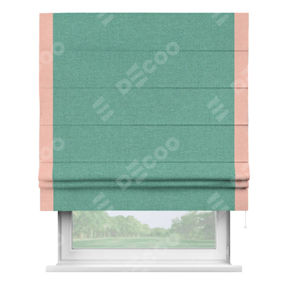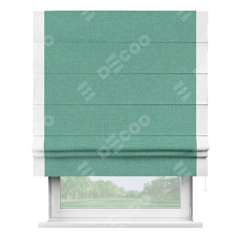 Римская штора «Кортин» с кантом Стрим Дуо, для проема, лён светло-бирюзовый