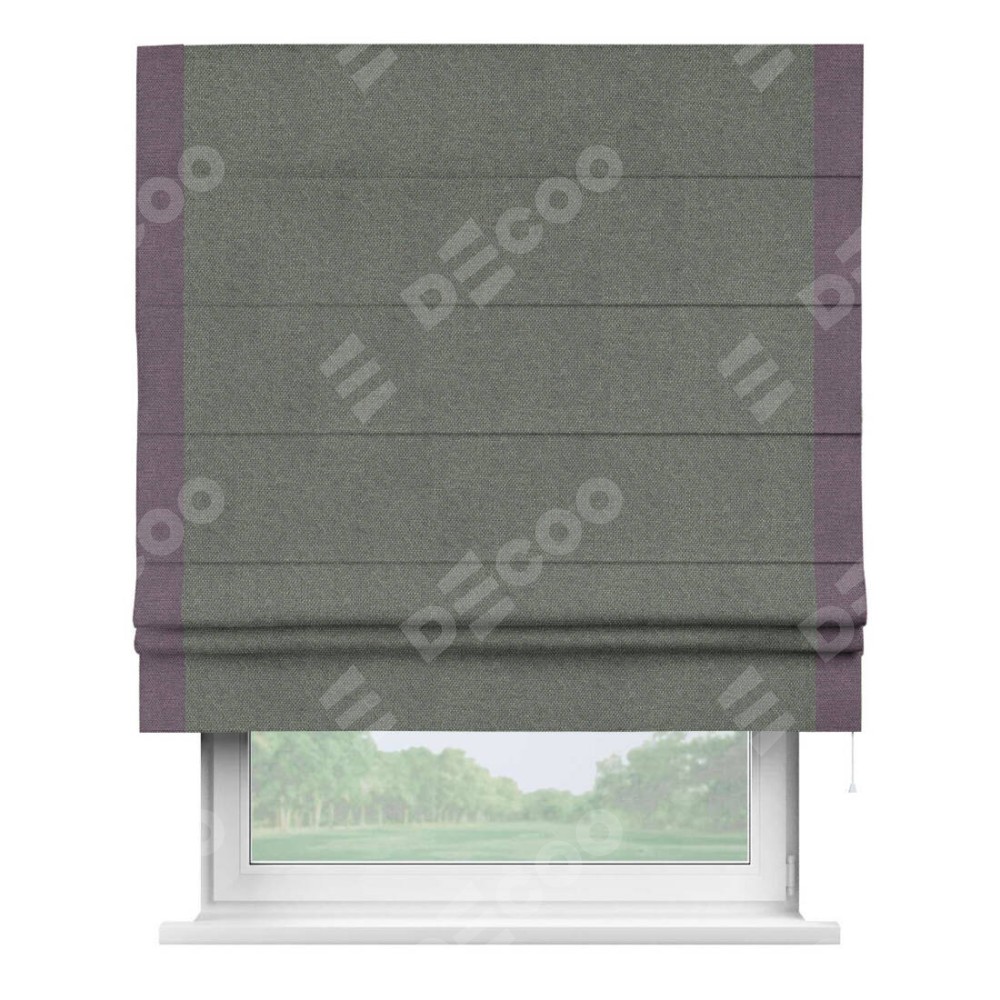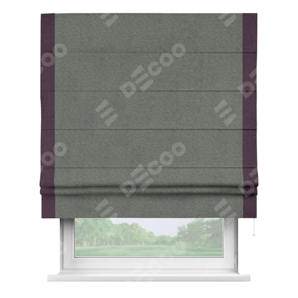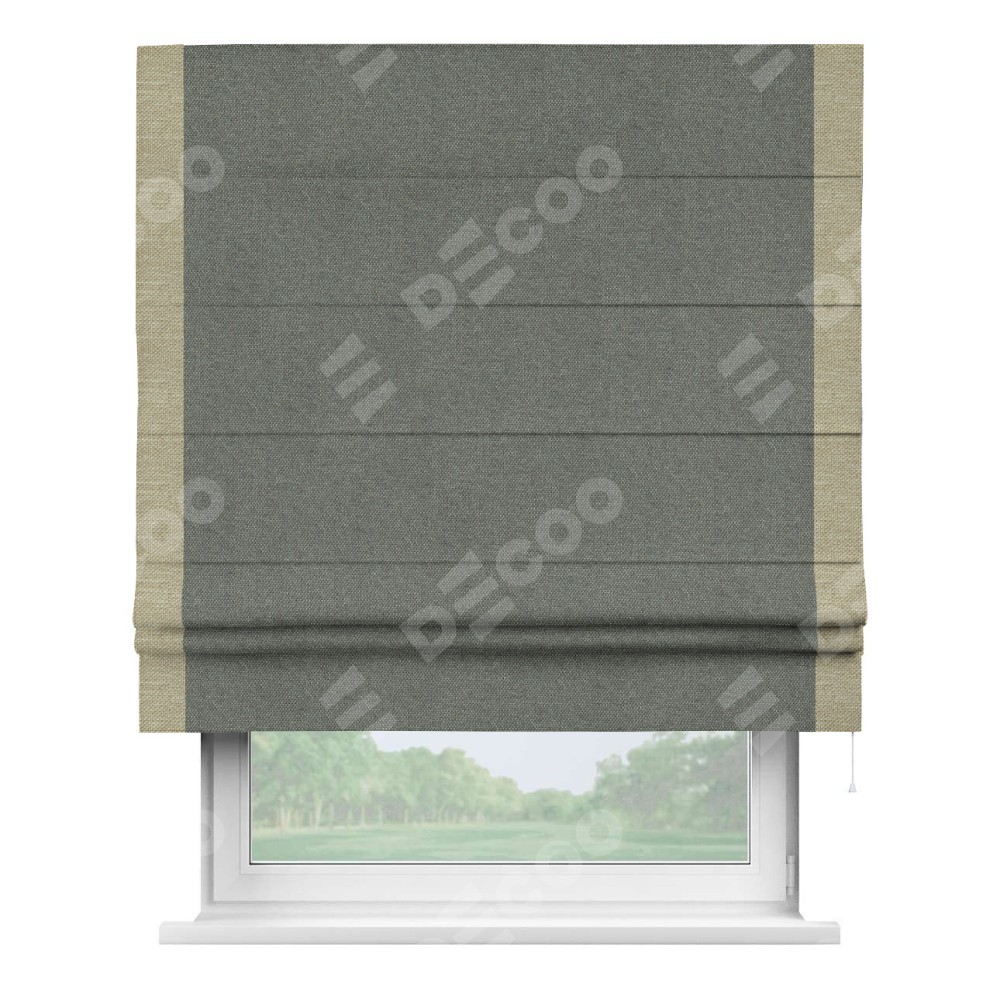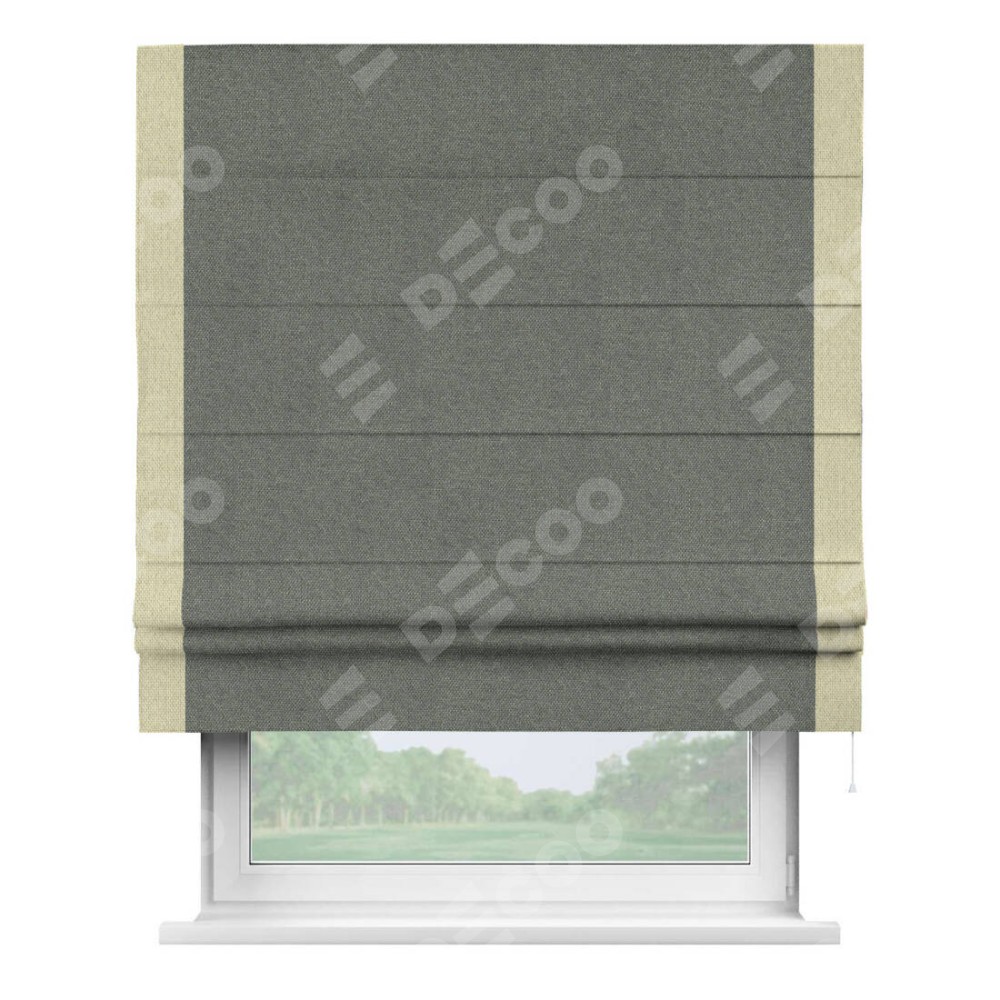 Римская штора «Кортин» с кантом Стрим Дуо, для проема, ткань лён димаут, тёмно-серый