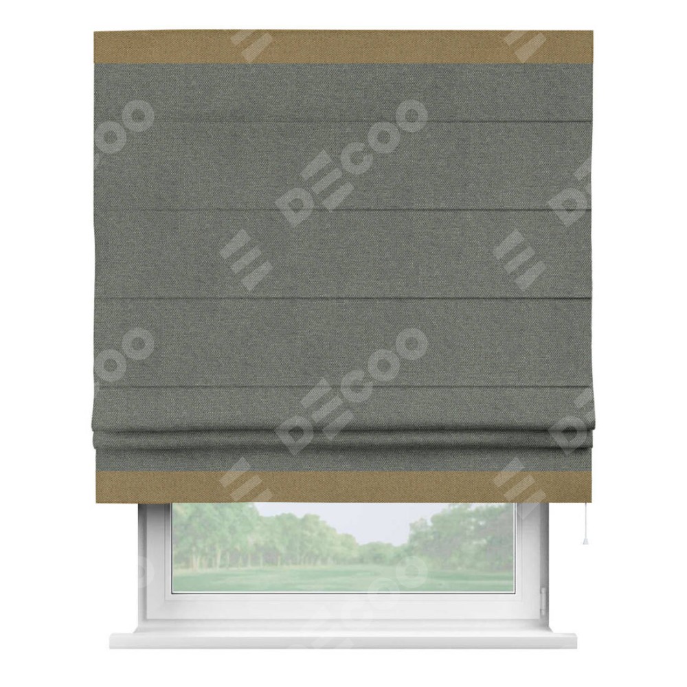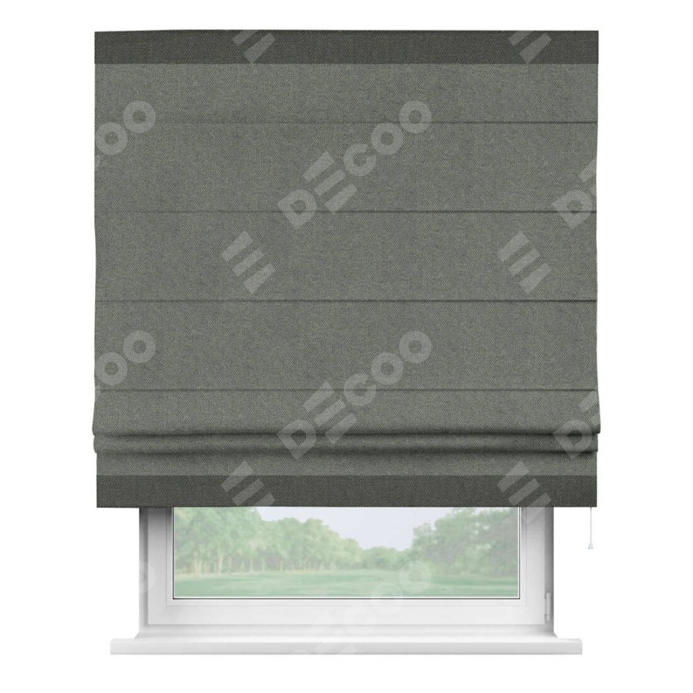Римская штора «Кортин» с кантом Горизонт, для проема, ткань лён димаут, тёмно-серый