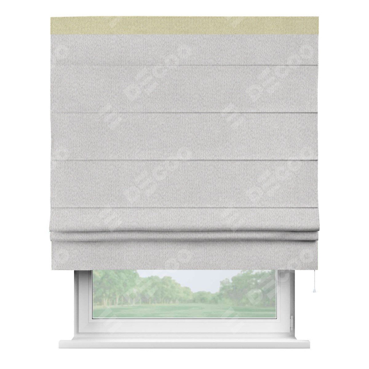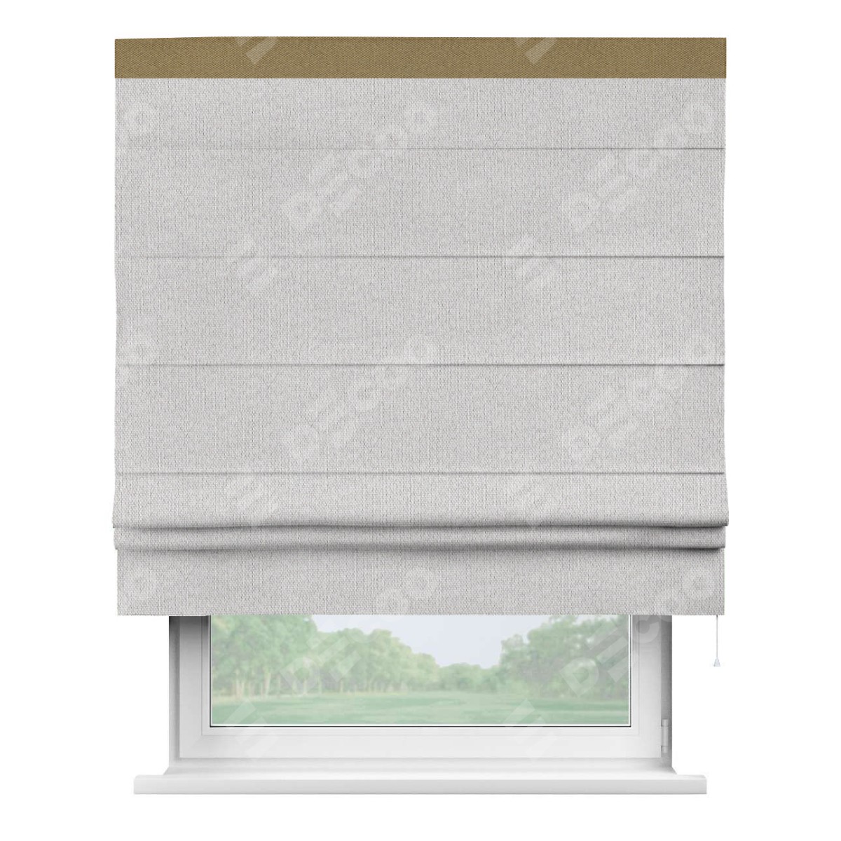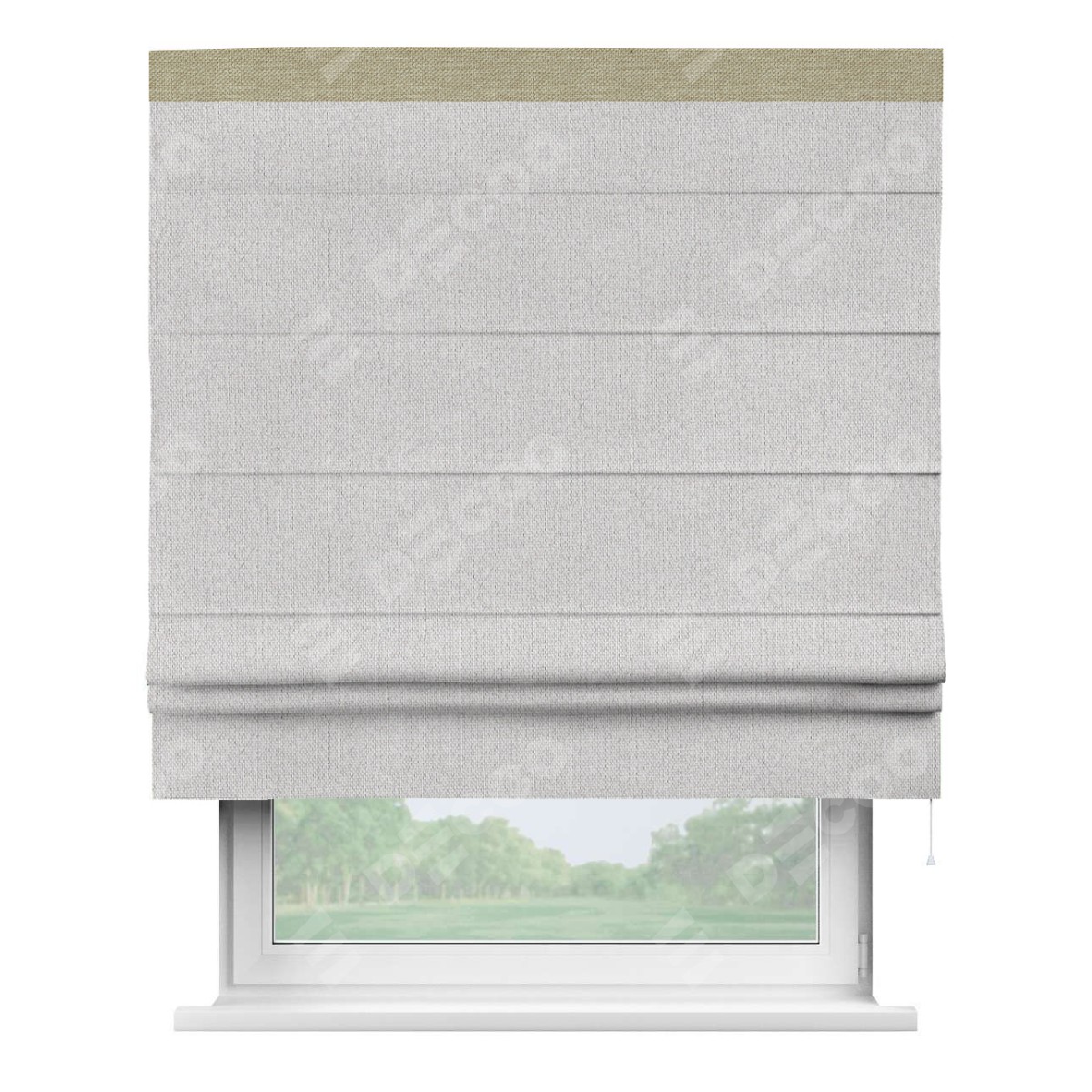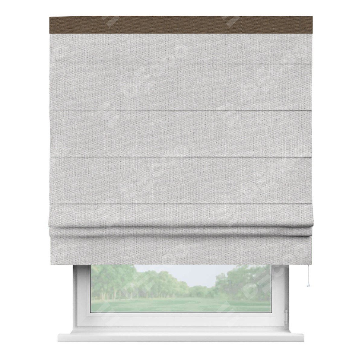 Римская штора производителя «Cortin», используется для проёма, пошита из ткани лён димаут светло-бежевый, артикул 90993. Отделка шторы кантом «Кинг», ткань для канта используется из льна димаут разной расцветки на выбор. Имеет универсальный механизм и подходит для монтажа: на потолок, на стену и в нишу.