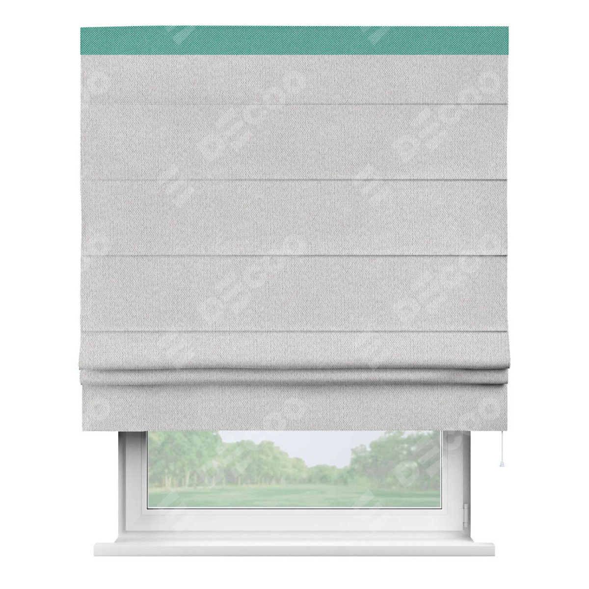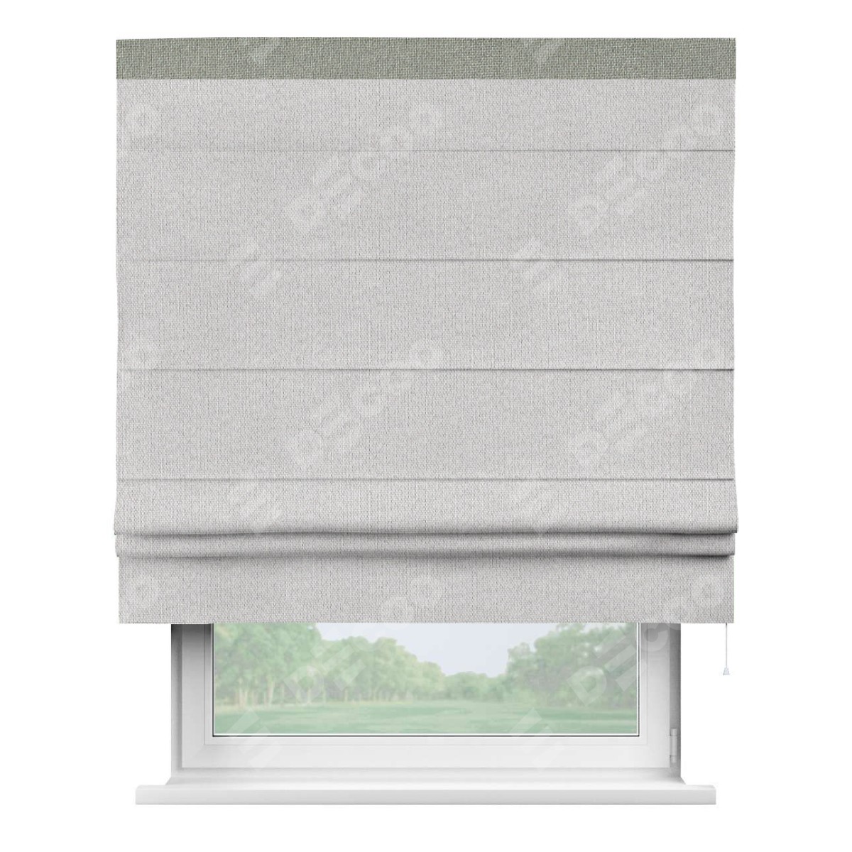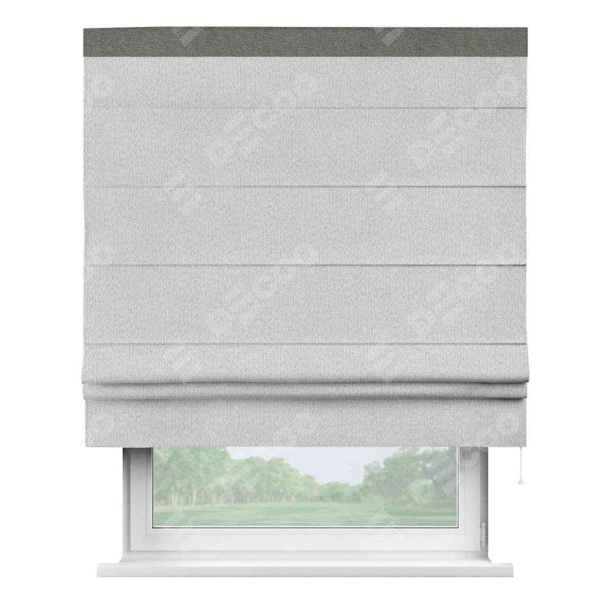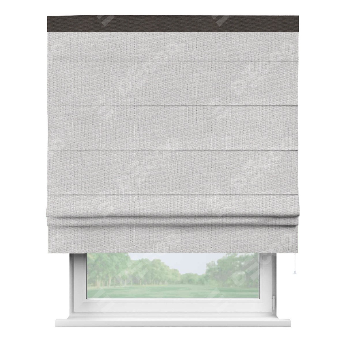 Римская штора производителя «Cortin», используется для проёма, пошита из ткани лён димаут светло-бежевый, артикул 90993. Отделка шторы кантом «Кинг», ткань для канта используется из льна димаут разной расцветки на выбор. Имеет универсальный механизм и подходит для монтажа: на потолок, на стену и в нишу.