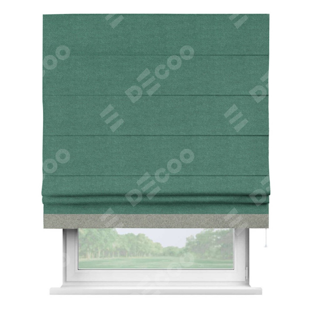 Римская штора «Кортин» для проема, лён димаут светло-бирюзовый с кантом Джестер