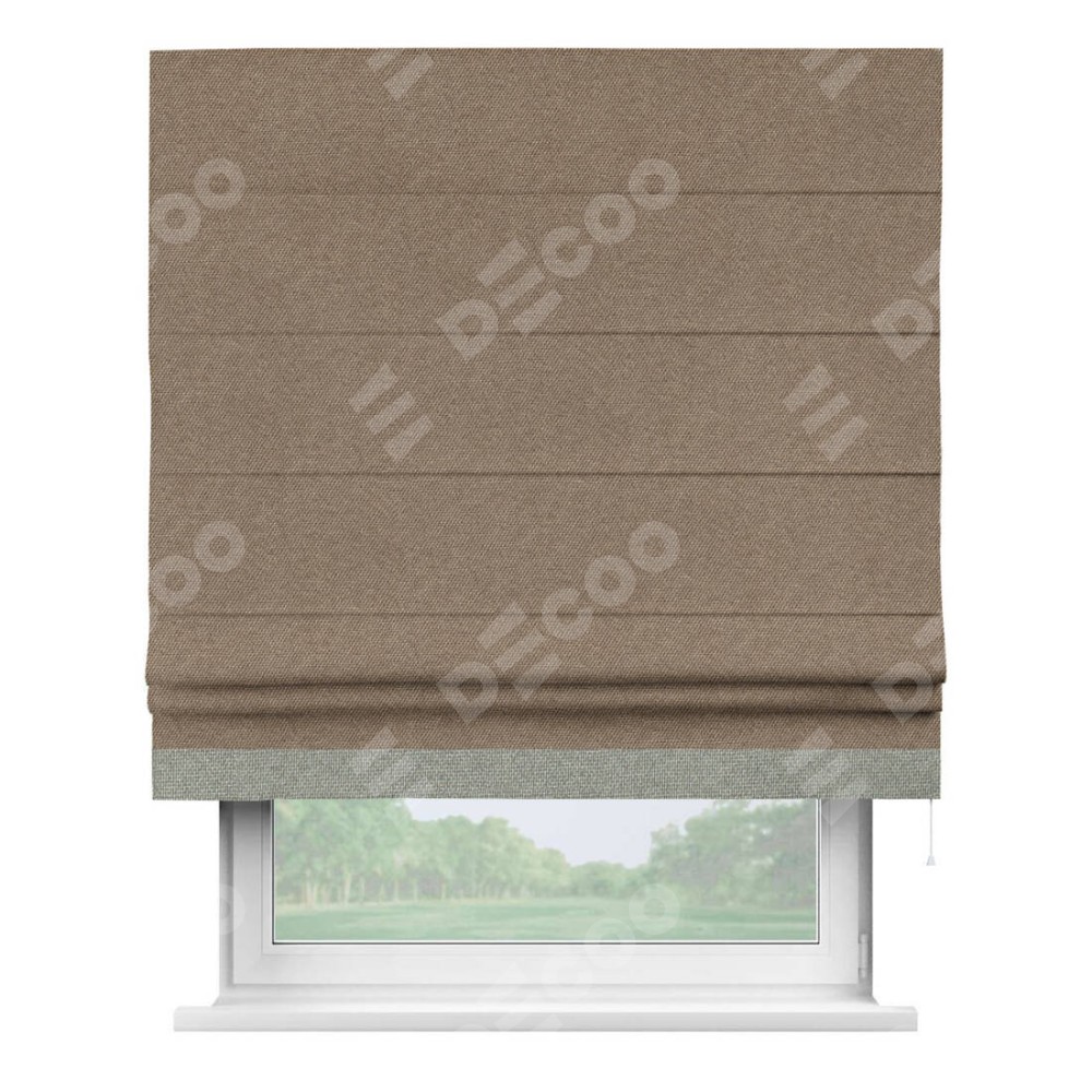 Римская штора «Кортин» для проема, лён димаут коричневый с кантом Джестер