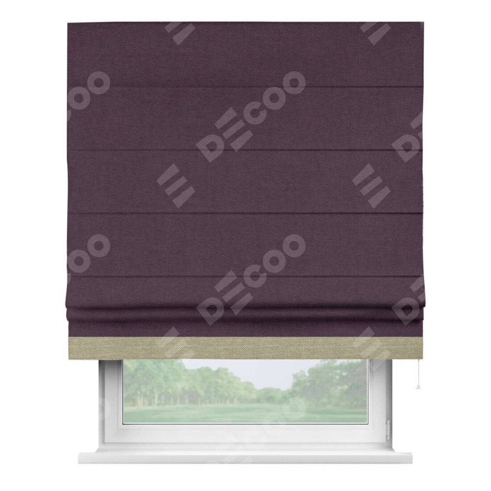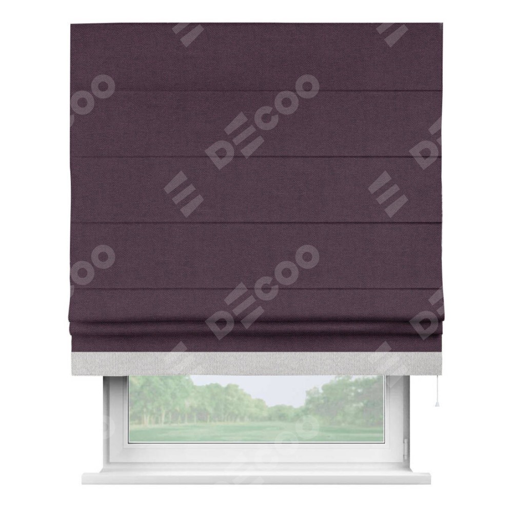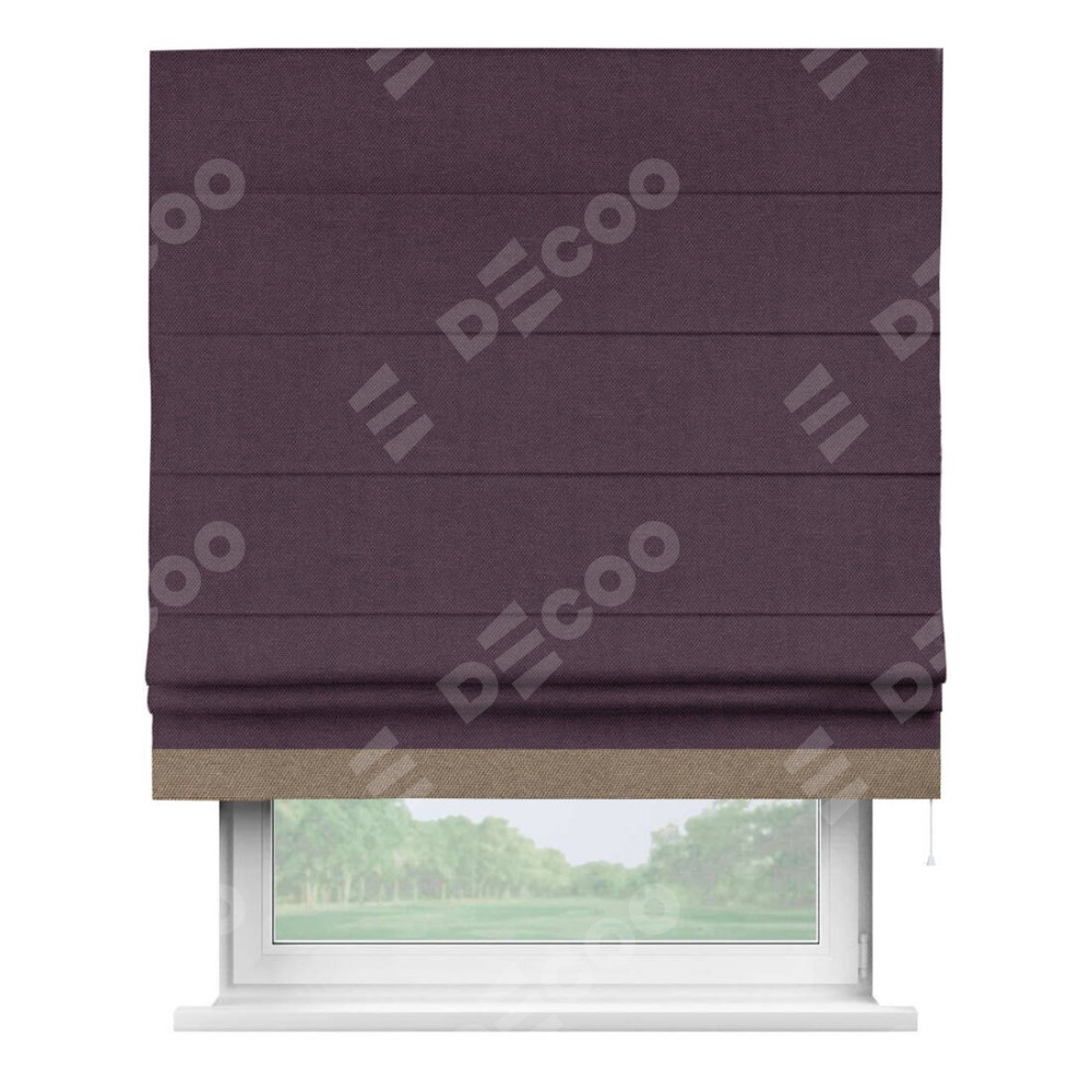 Римская штора «Кортин» для проема, лён димаут фиолетовый с кантом Джестер