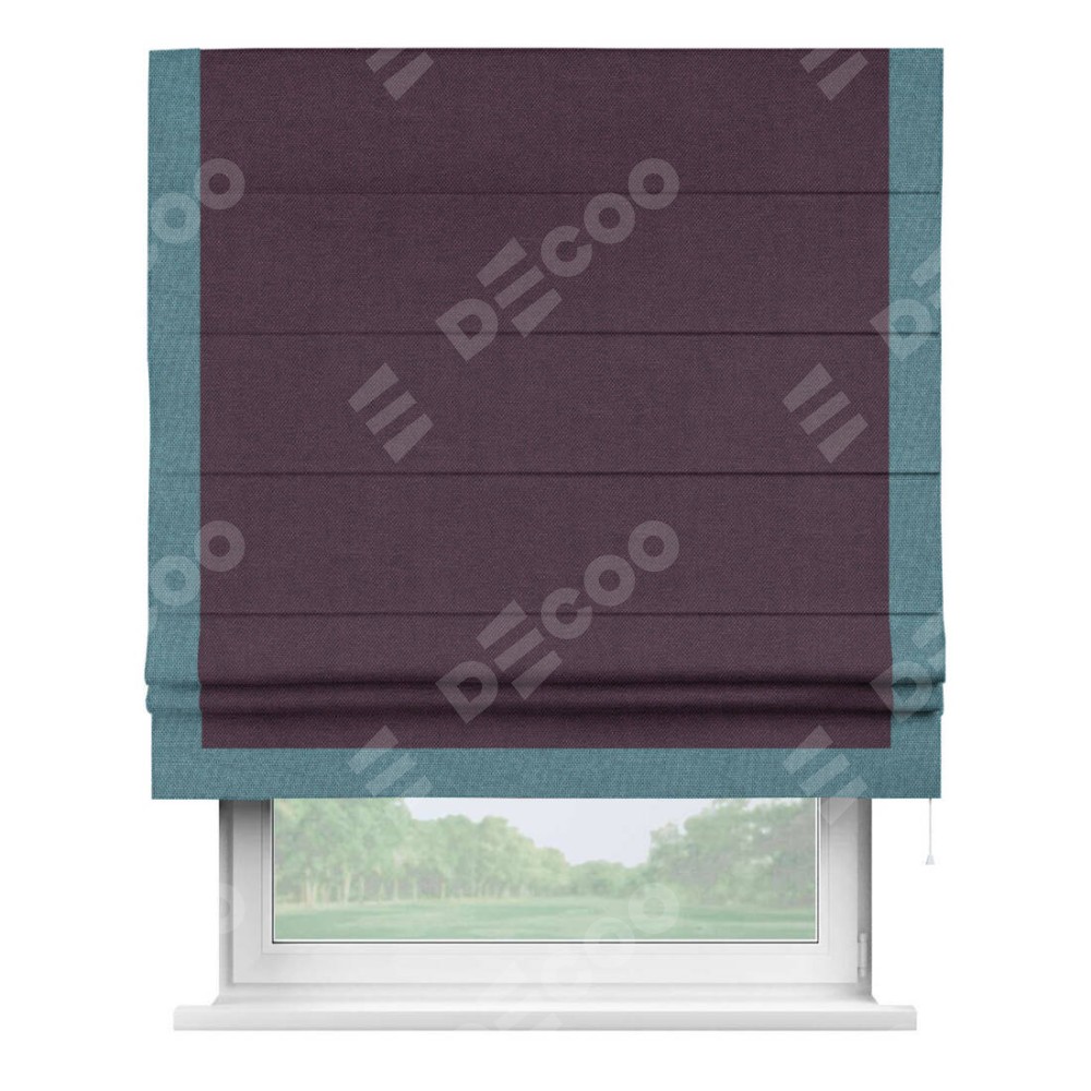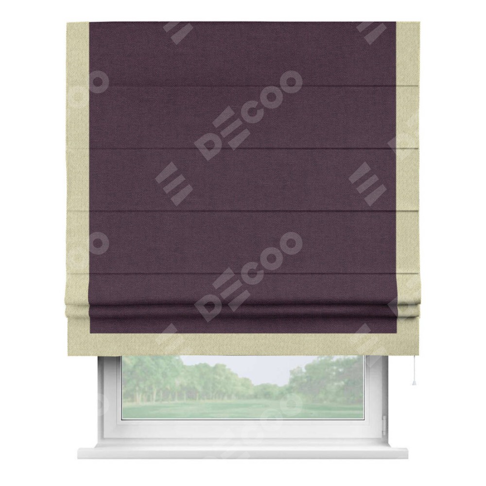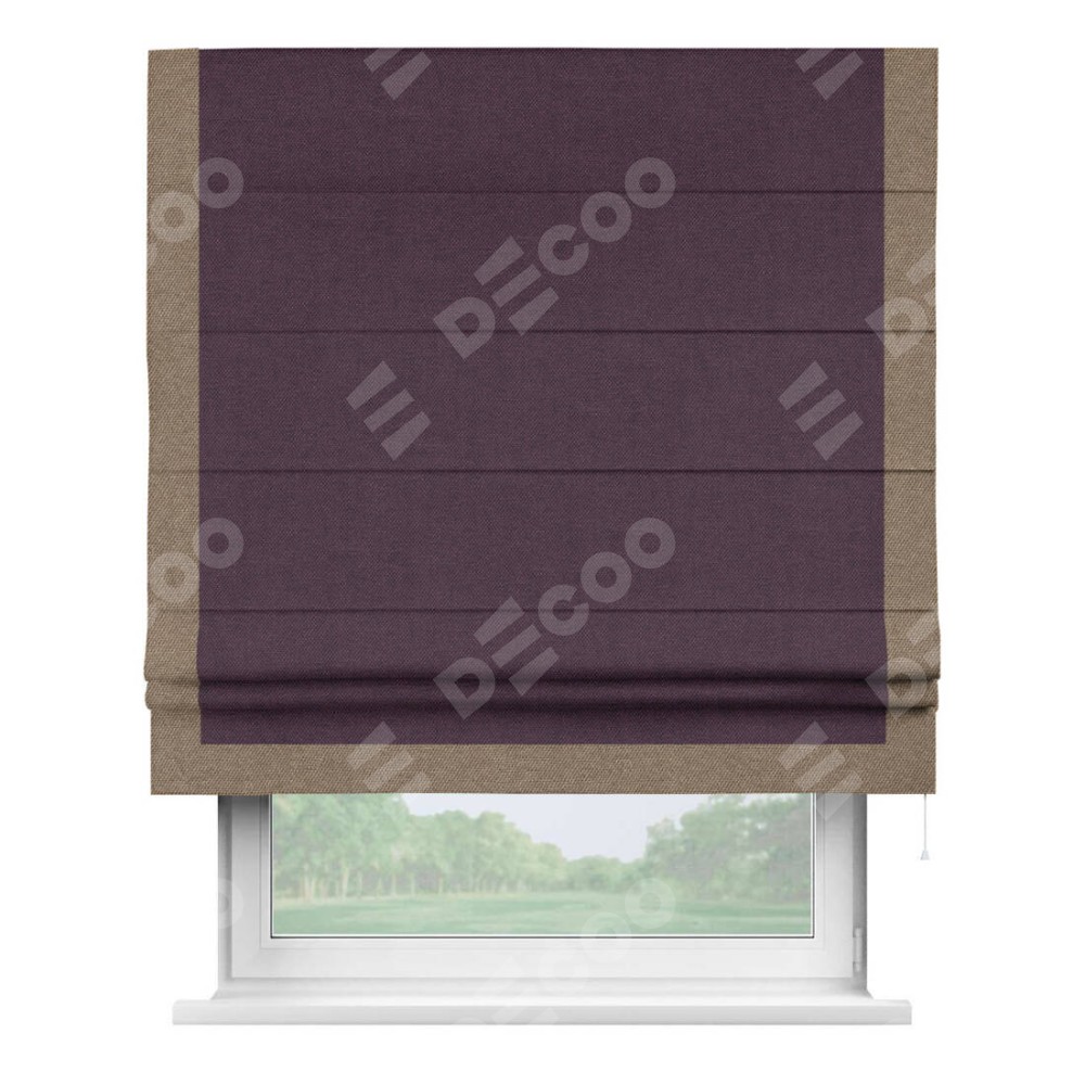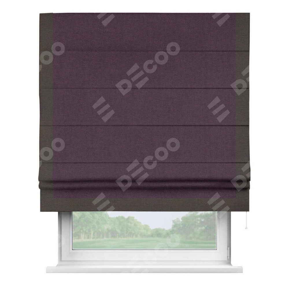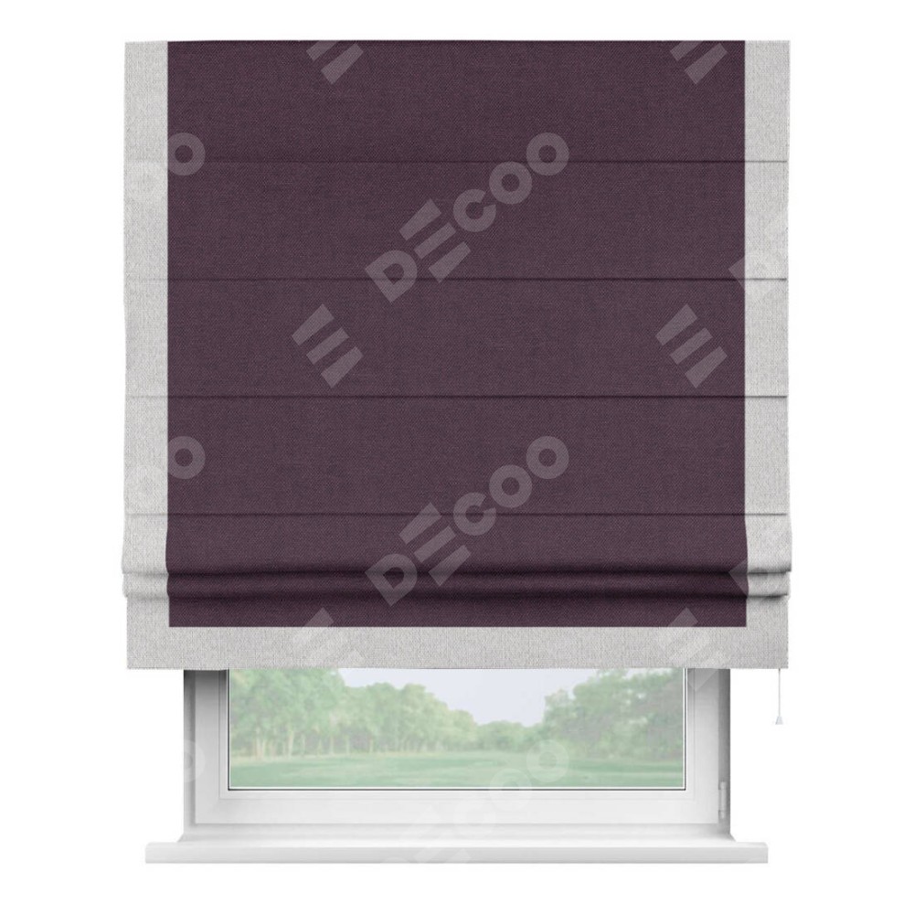 Римская штора «Кортин» для проема, лён димаут фиолетовый с кантом Виктория