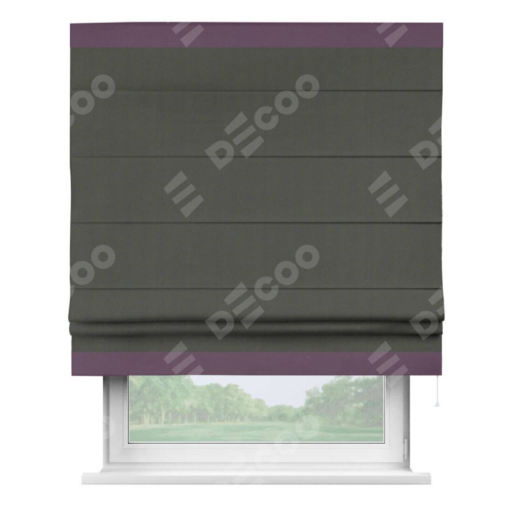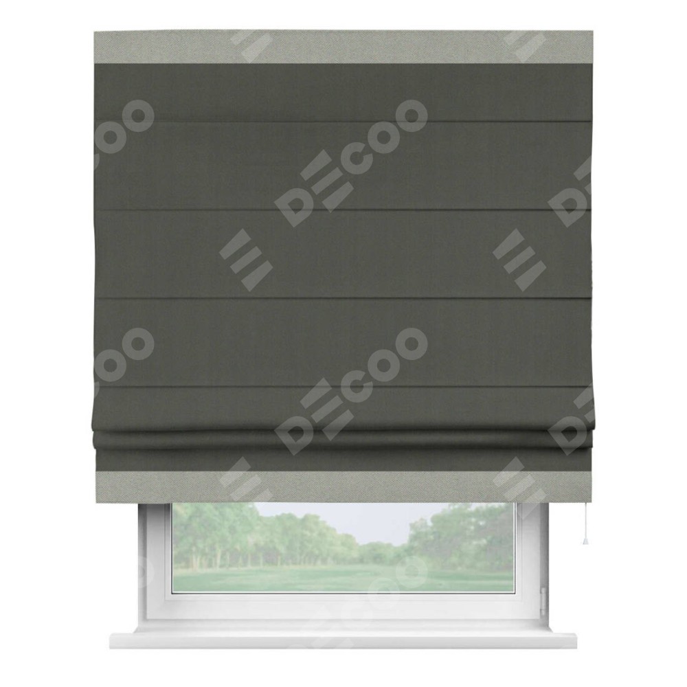 Римская штора «Кортин» для проема, блэкаут однотонный дымчато-серый с кантом Горизонт