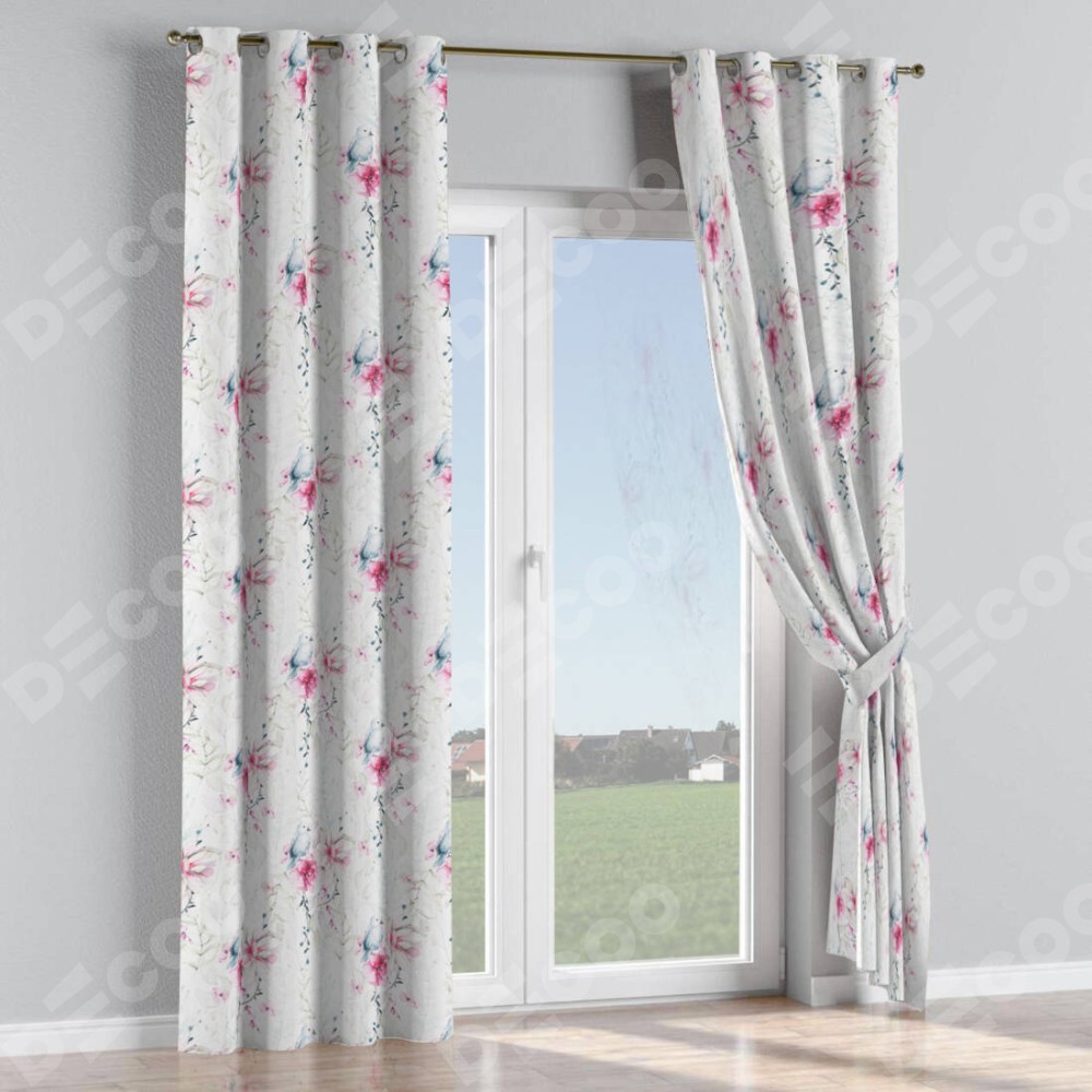 Комплект прямых штор, от производителя «Cortin», пошиты из ткани блэкаут с нанесением сублимационной печати «Мелодия цветов». Данная модель пошита на люверсах, комплектуется на выбор круглым карнизом и подходит для монтажа на стену или потолок. Прямые шторы на люверсах шьются по стандарту с коэффициентом 1/2 (на 100 см. ширины проёма 200 см. ширины ткани), отличительным преимуществом данной модели является простой способ монтажа. Достаточно повесить ее на трубу и штора готова!