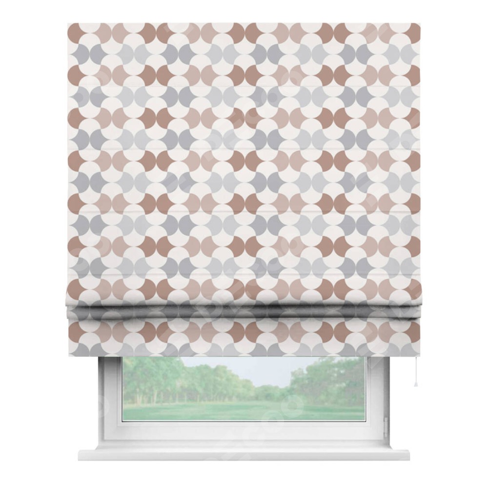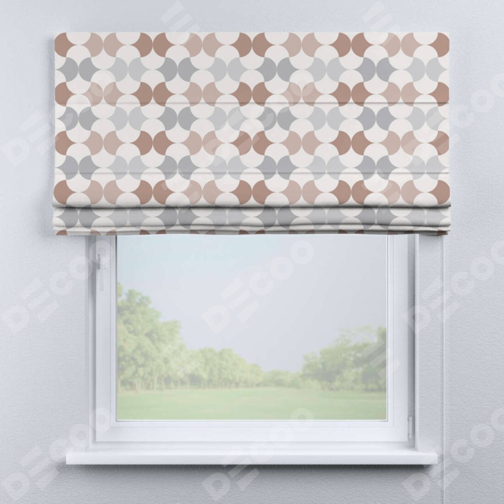 Классическая римская штора производителя «Cortin», пошита из ткани блэкаут с нанесением сублимационной печати «Модерн светлый». Имеет универсальный механизм и подходит для монтажа: на потолок, на стену и в нишу.