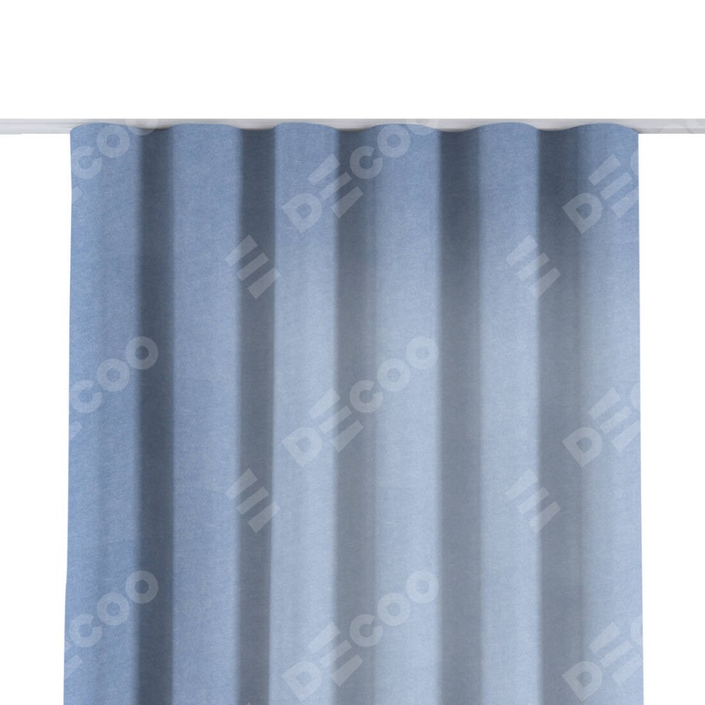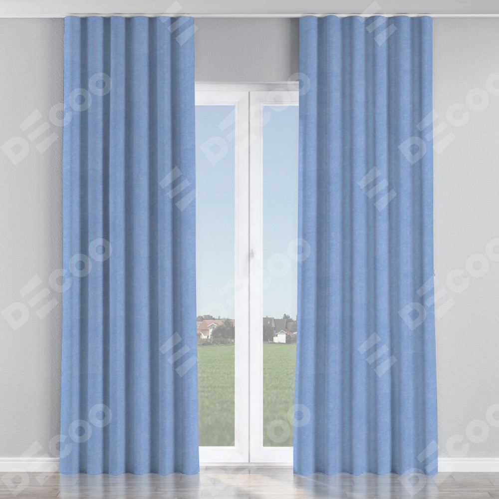 Комплект прямых штор, от производителя «Cortin», пошиты из ткани вельвет васильковый, артикул ткани 33799. С изнаночной стороны в верхней части штор пристрачивается шторная лента с декоративными складками «Волна». Для создания элегантных складок прямые шторы шьются по стандарту с коэффициентом 1:2 (на 100 см. ширины проёма 200 см. ширины ткани).