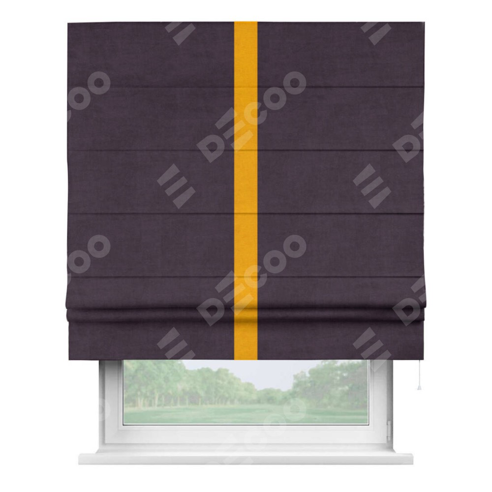 Римская штора «Кортин» для проема, вельвет тёмно-фиолетовый с кантом Хайвэй