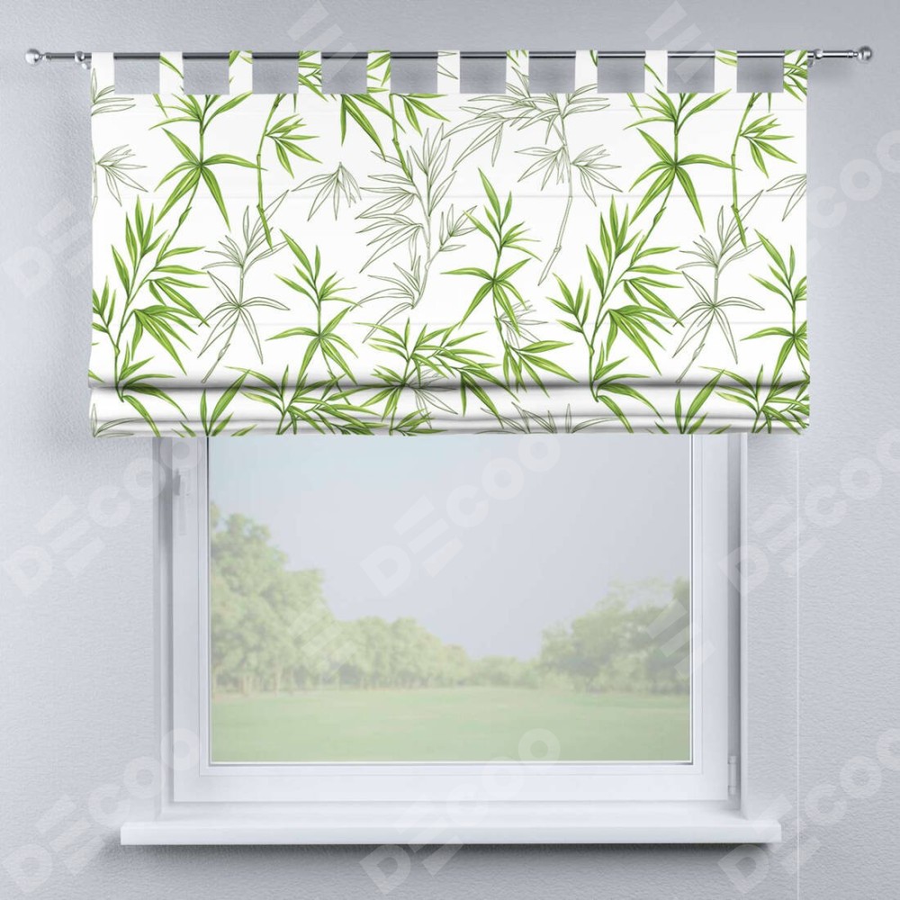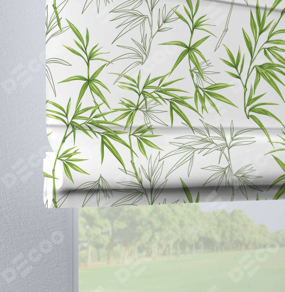 Римская штора производителя «Cortin», используется для проёма, пошита из ткани блэкаут с нанесением сублимационной печати «Зелёный бамбук». Данная модель пошита на петлях, комплектуется на выбор круглым карнизом и подходит для монтажа на стену. Римская штора на петлях имеет простую систему регулировки высоты, отличительным преимуществом данной модели является простой способ монтажа. Достаточно повесить ее на трубу и штора готова!