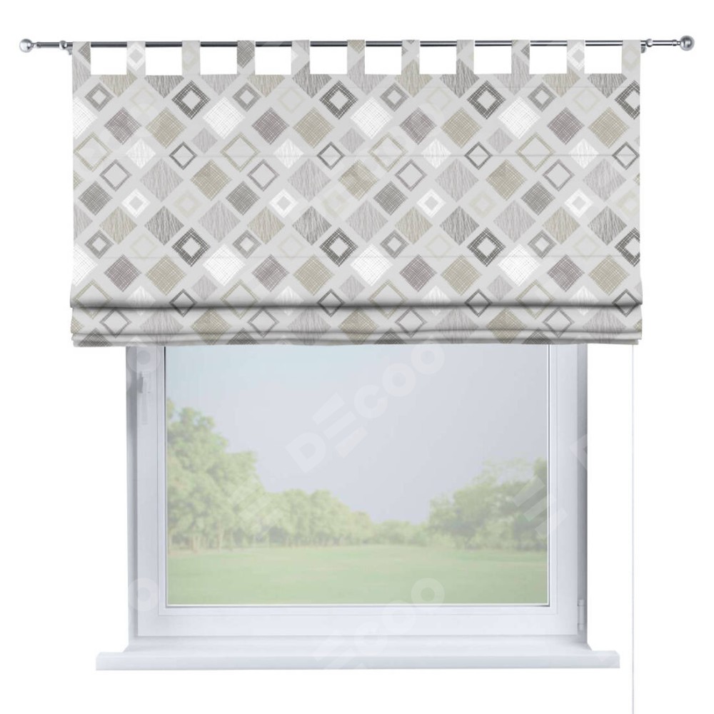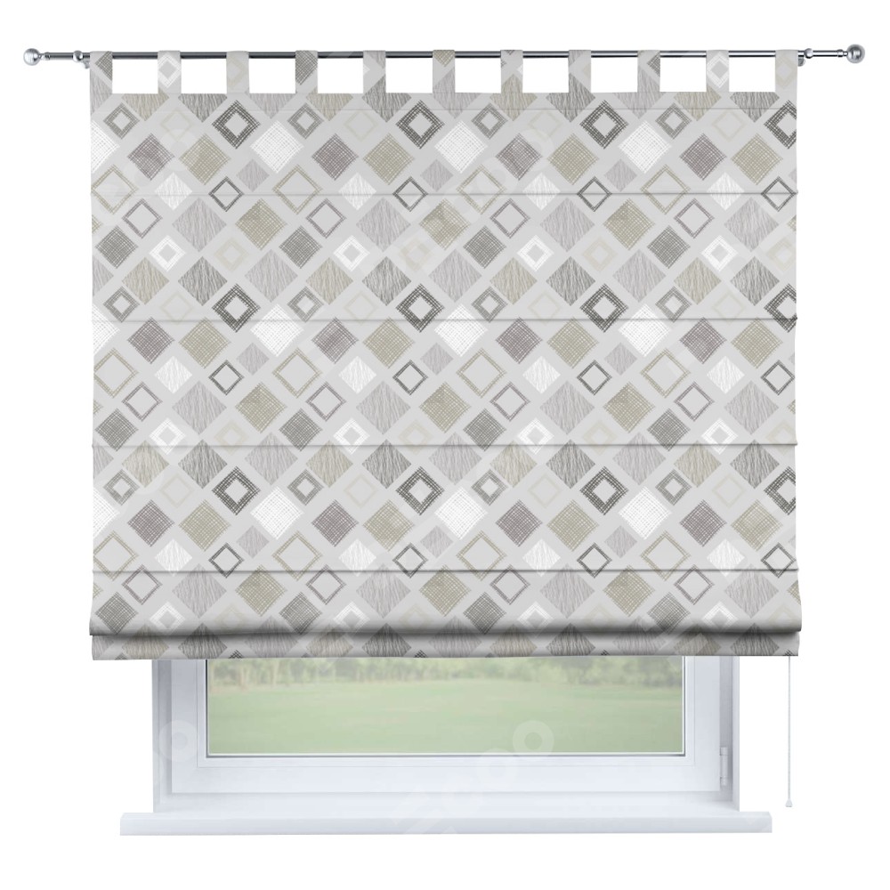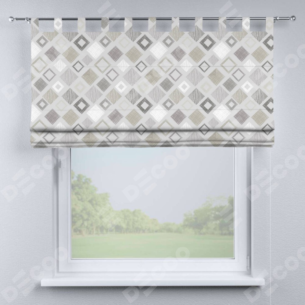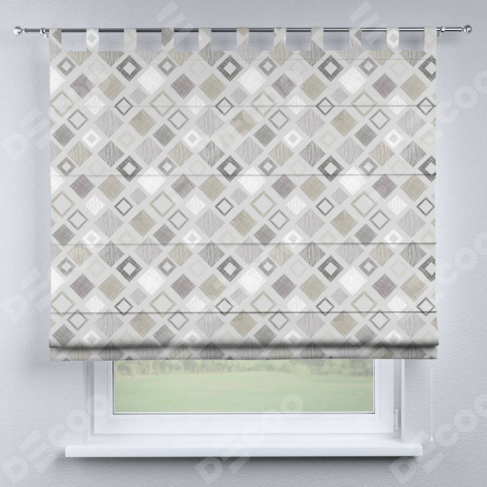 Римская штора производителя «Cortin», используется для проёма, пошита из ткани блэкаут с нанесением сублимационной печати «Квадро». Данная модель пошита на петлях, комплектуется на выбор круглым карнизом и подходит для монтажа на стену. Римская штора на петлях имеет простую систему регулировки высоты, отличительным преимуществом данной модели является простой способ монтажа. Достаточно повесить ее на трубу и штора готова!