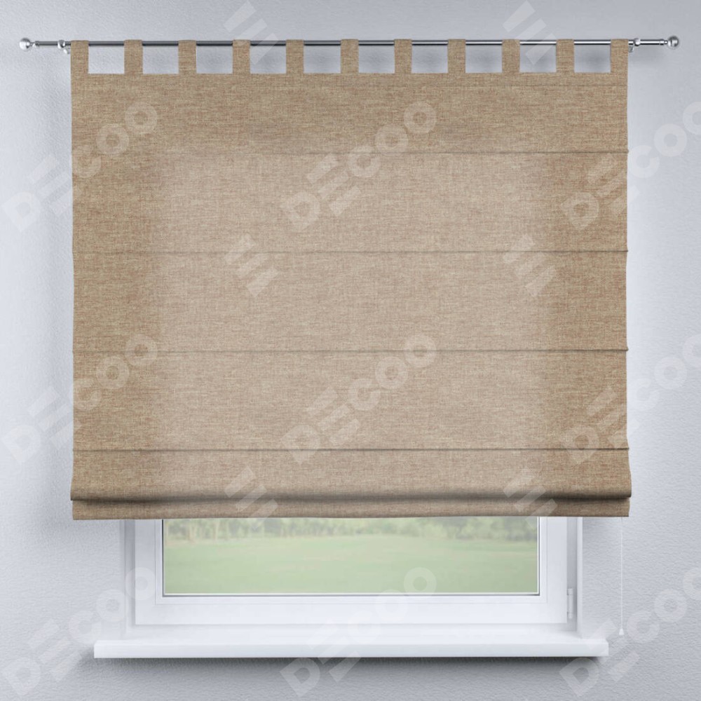Римская штора производителя «Cortin», используется для проёма, пошита из ткани лён кашемир коричневый, артикул ткани 21614. Данная модель пошита на петлях, комплектуется на выбор круглым карнизом и подходит для монтажа на стену. Римская штора на петлях имеет простую систему регулировки высоты, отличительным преимуществом данной модели является простой способ монтажа. Достаточно повесить ее на трубу и штора готова!