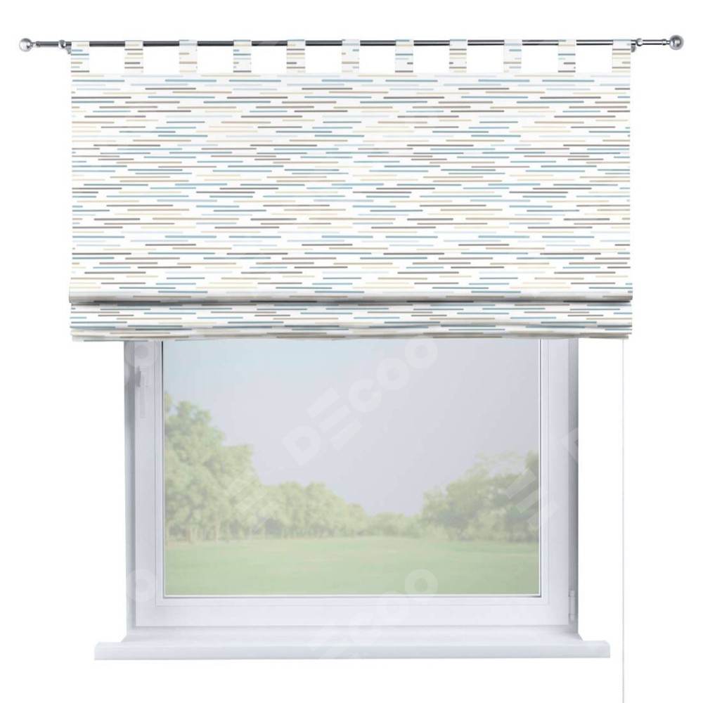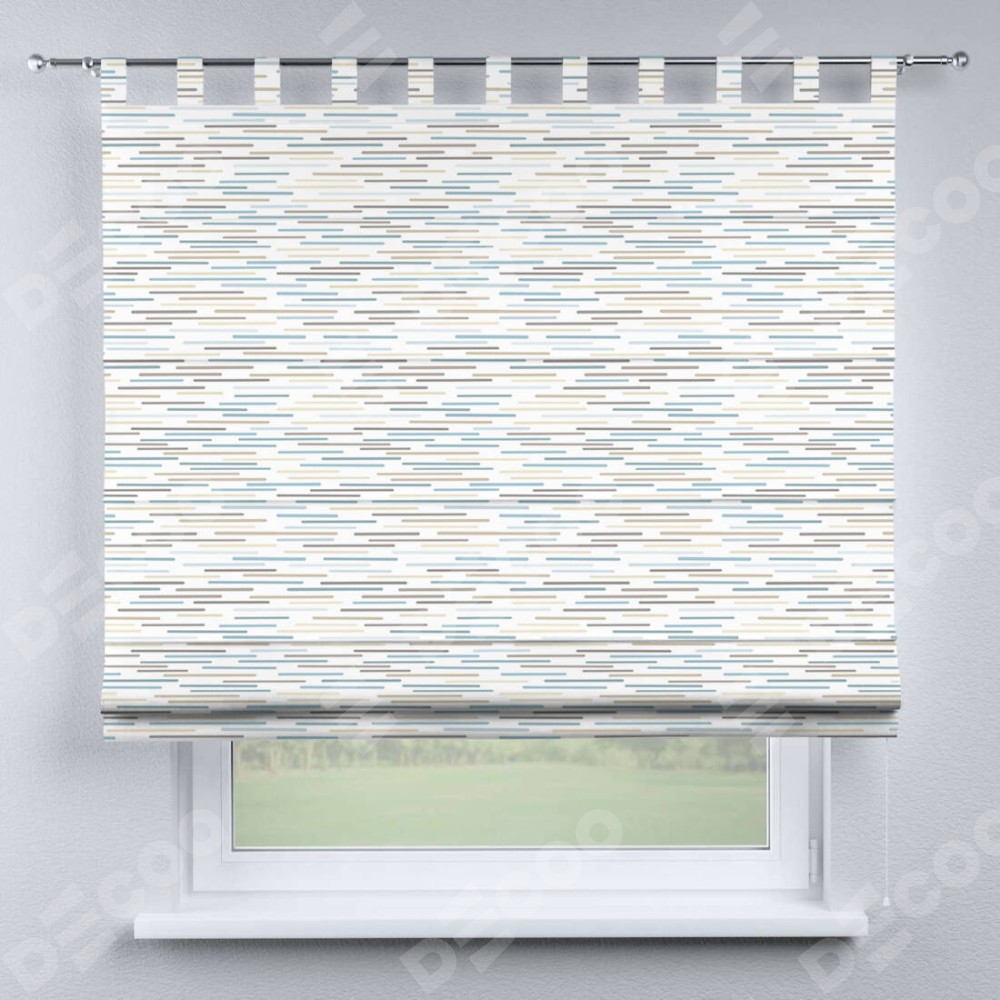 Римская штора производителя «Cortin», используется для проёма, пошита из ткани блэкаут с нанесением сублимационной печати «Стелс». Данная модель пошита на петлях, комплектуется на выбор круглым карнизом и подходит для монтажа на стену. Римская штора на петлях имеет простую систему регулировки высоты, отличительным преимуществом данной модели является простой способ монтажа. Достаточно повесить ее на трубу и штора готова!