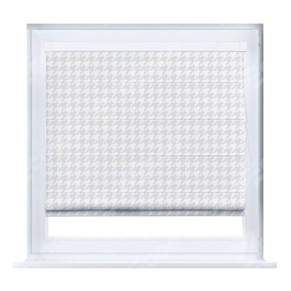 Римская штора производителя «Cortin», устанавливается на створку окна, пошита из ткани блэкаут с нанесением сублимационной печати «Гусиные лапки» молочный». Штора шьётся по индивидуальным размерам, для данного типа римской шторы возможная ширина от 35 до 150 см., высота до 250 см.