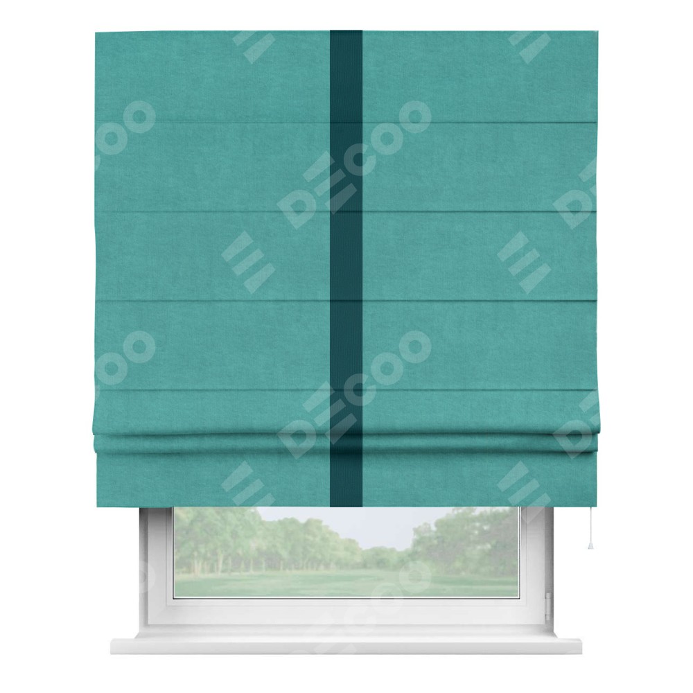 Римская штора «Кортин» для проема, канвас бирюзовый, с кантом Хайвэй