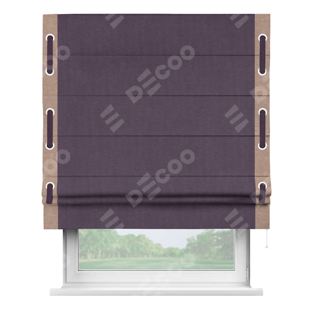Римская штора «Кортин» для проема, канвас баклажановый, с кантом Стрим Дуо (люверсы с пояском)