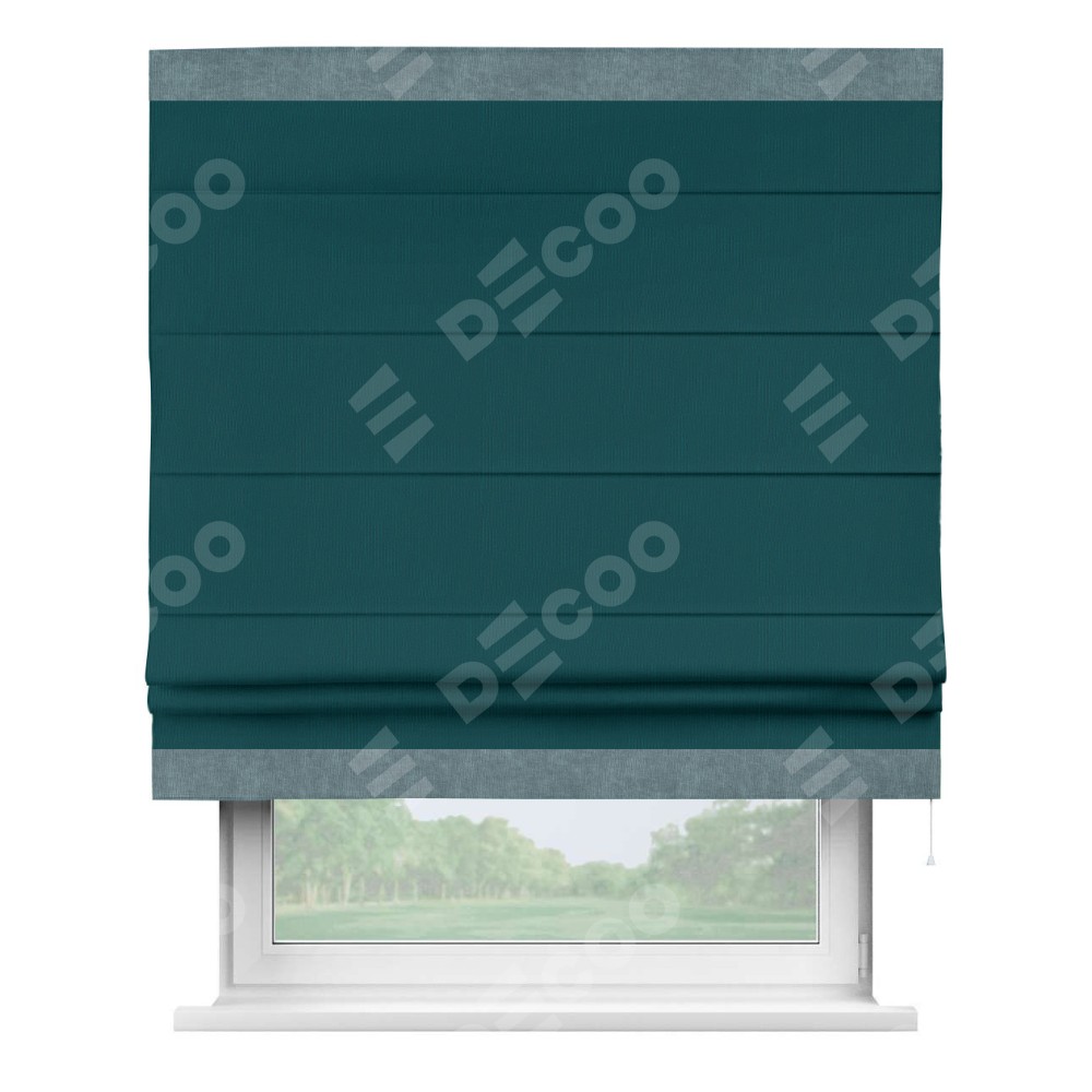 Римская штора «Кортин» для проема, канвас изумрудный, с кантом Горизонт