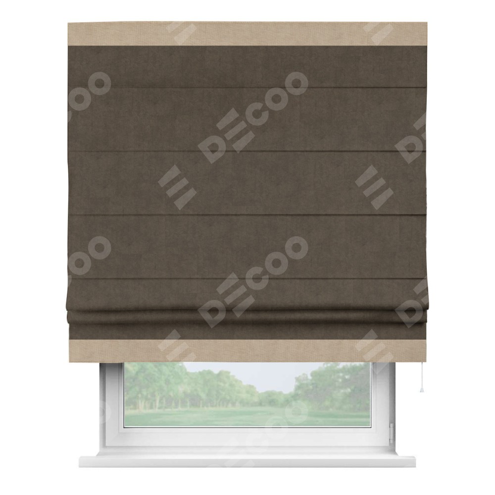 Римская штора «Кортин» для проема, канвас коричневый, с кантом Горизонт