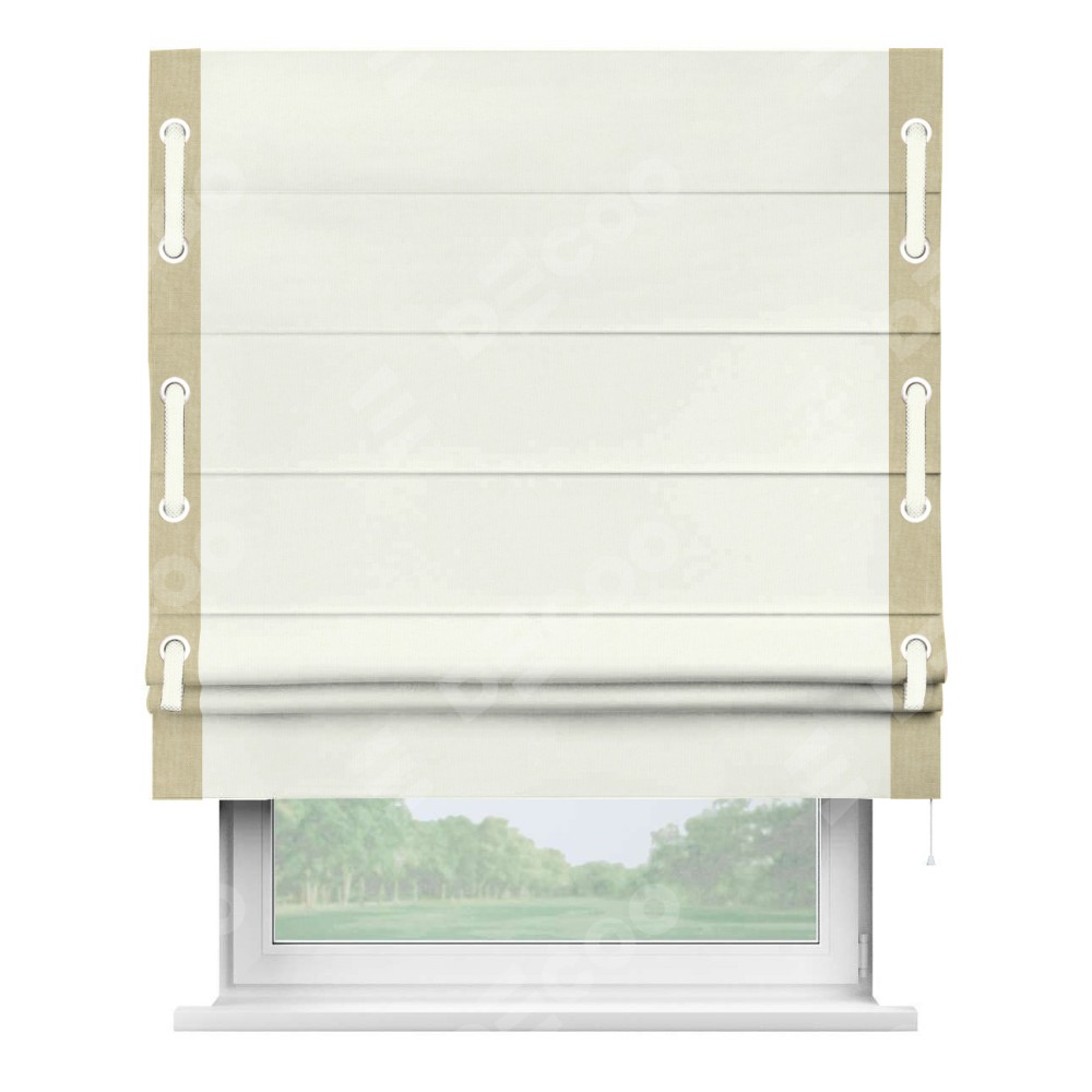 Римская штора «Кортин» для проема, канвас молочный, с кантом Стрим Дуо (люверсы с пояском)