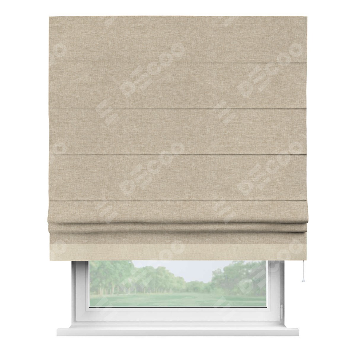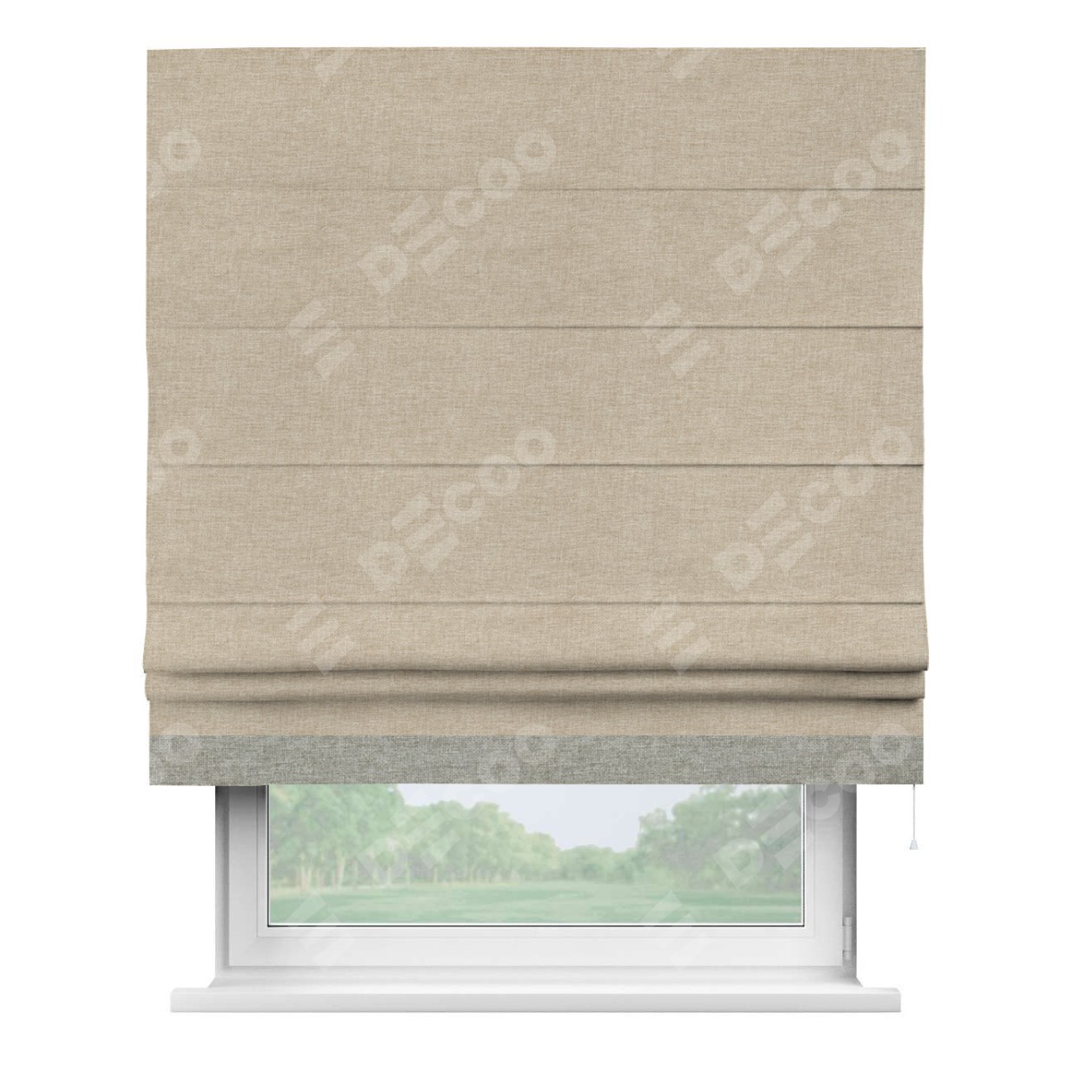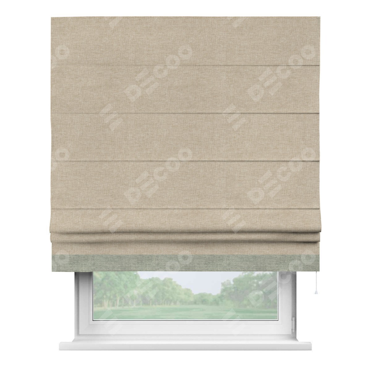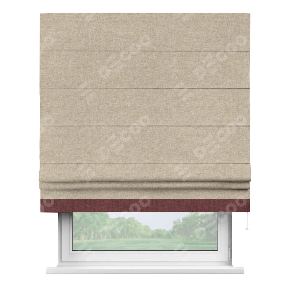 Римская штора производителя «Cortin», используется для проёма, пошита из ткани лён кашемир бежевый, артикул 17206. Отделка шторы кантом «Джестер», ткань для канта используется из льна разной расцветки на выбор. Имеет универсальный механизм и подходит для монтажа: на потолок, на стену и в нишу.