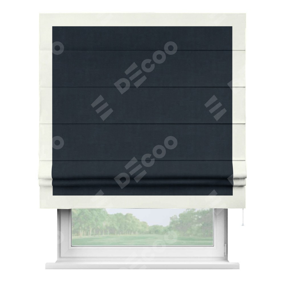 Римская штора «Кортин» для проема, канвас тёмно-синий, с кантом Чесс