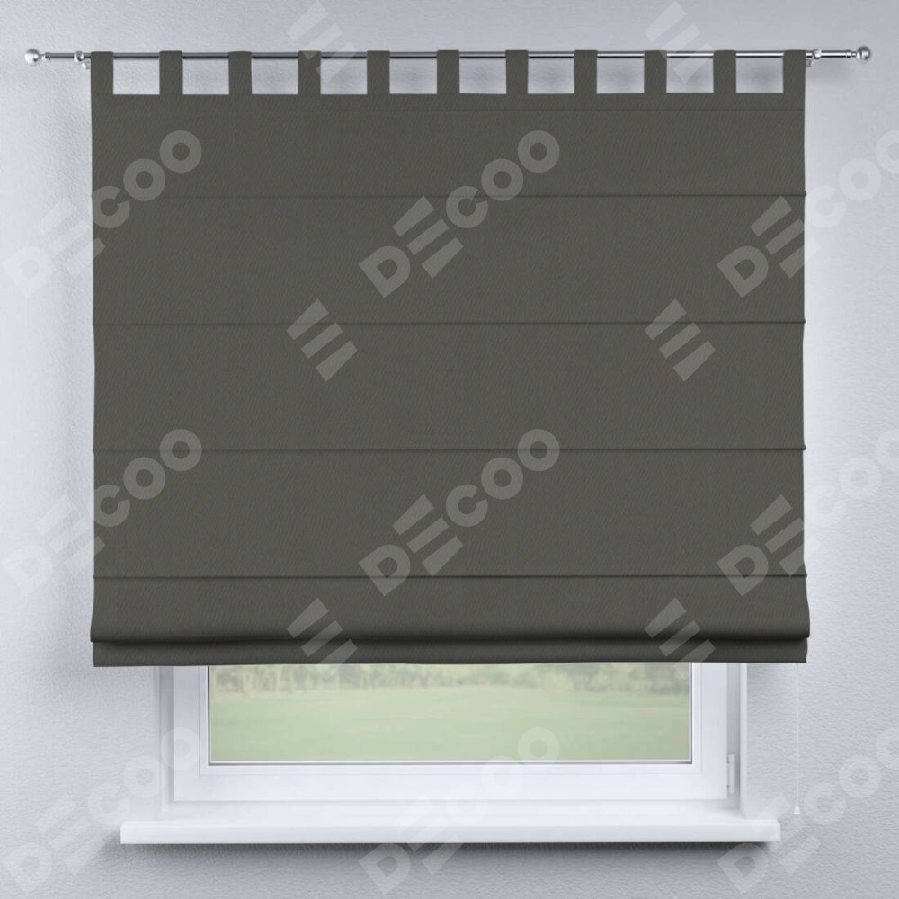 Римская штора производителя «Cortin», используется для проёма, пошита из ткани блэкаут однотонный тёмно-серый, артикул ткани 91570. Данная модель пошита на петлях, комплектуется на выбор круглым карнизом и подходит для монтажа на стену. Римская штора на петлях имеет простую систему регулировки высоты, отличительным преимуществом данной модели является простой способ монтажа. Достаточно повесить ее на трубу и штора готова!