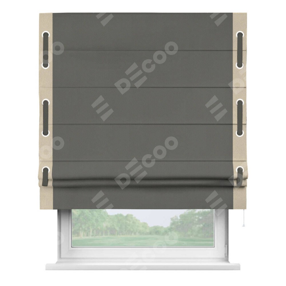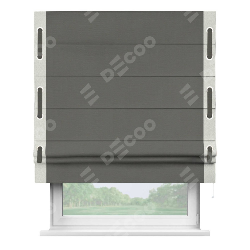 Римская штора «Кортин» для проема, блэкаут однотонный тёмно-серый с кантом Стрим Дуо (люверсы с пояском)