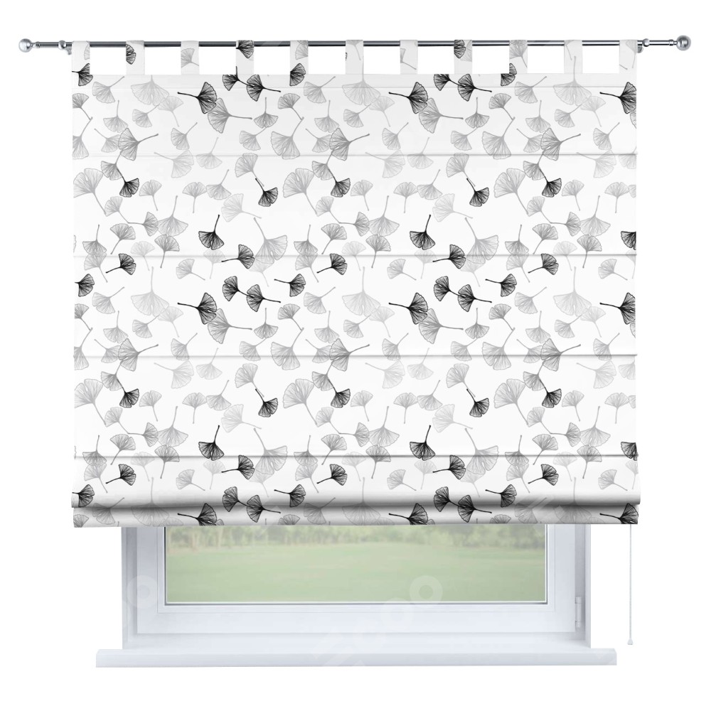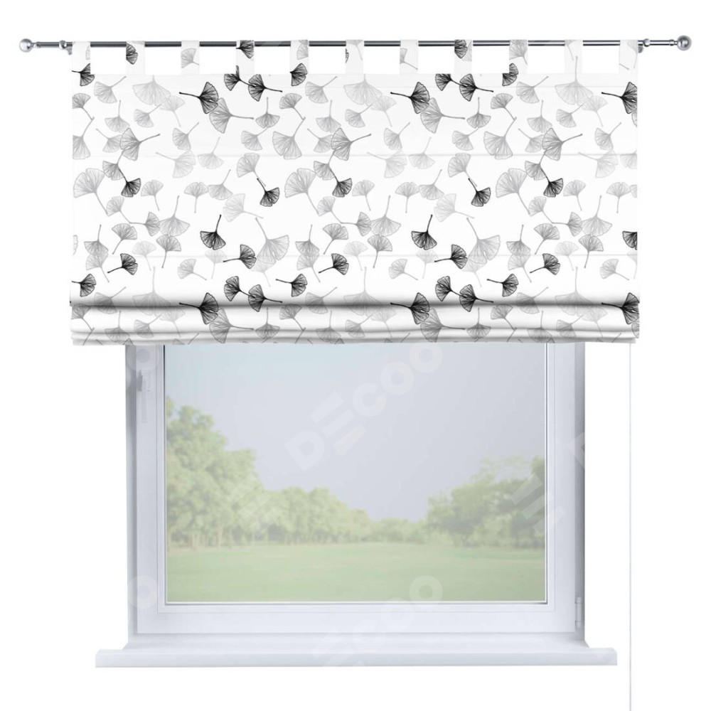 Римская штора производителя «Cortin», используется для проёма, пошита из ткани блэкаут с нанесением сублимационной печати «Дымчатые листочки». Данная модель пошита на петлях, комплектуется на выбор круглым карнизом и подходит для монтажа на стену. Римская штора на петлях имеет простую систему регулировки высоты, отличительным преимуществом данной модели является простой способ монтажа. Достаточно повесить ее на трубу и штора готова!