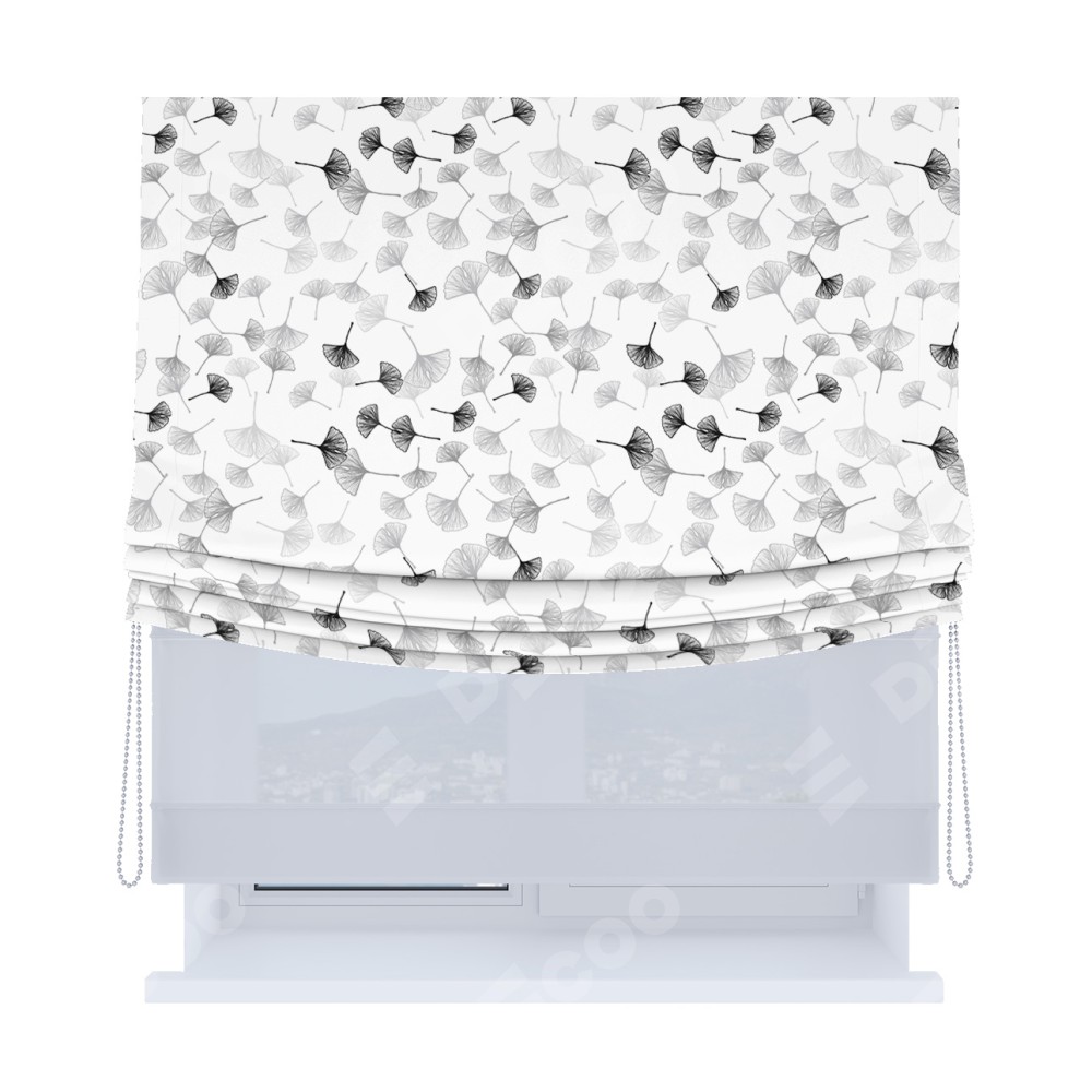 Римская штора «Кортин», день-ночь с мягкими складками, «Дымчатые листочки»