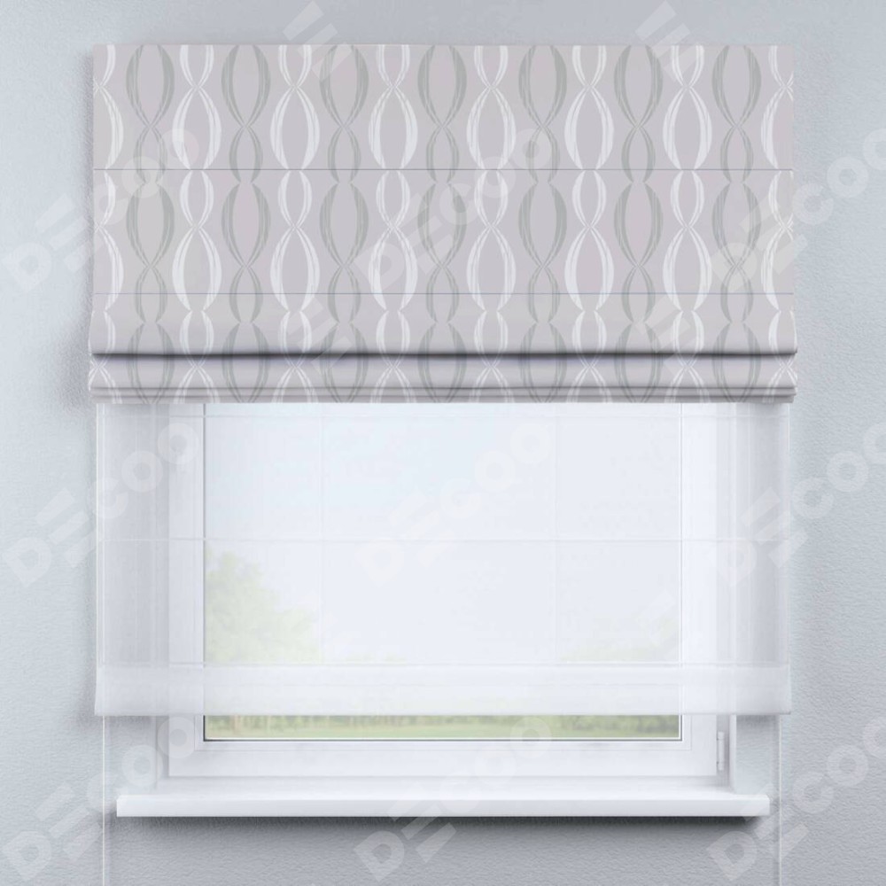 Двойная римская штора «День-ночь» от производителя Cortin предназначена для использования в проёмах. Эта штора уникальна тем, что состоит из двух полотен. На лицевой стороне находится блэкаут с нанесением сублимационной печати «Омега», обеспечивающий эффективное затемнение. В комплект также входит вторая ткань — легкий белый тюль (артикул: V-01), который добавляет изящества и легкости оформлению окна. Кроме того, доступны и другие разновидности ткани тюль, выбор которых доступен по  ссылке .