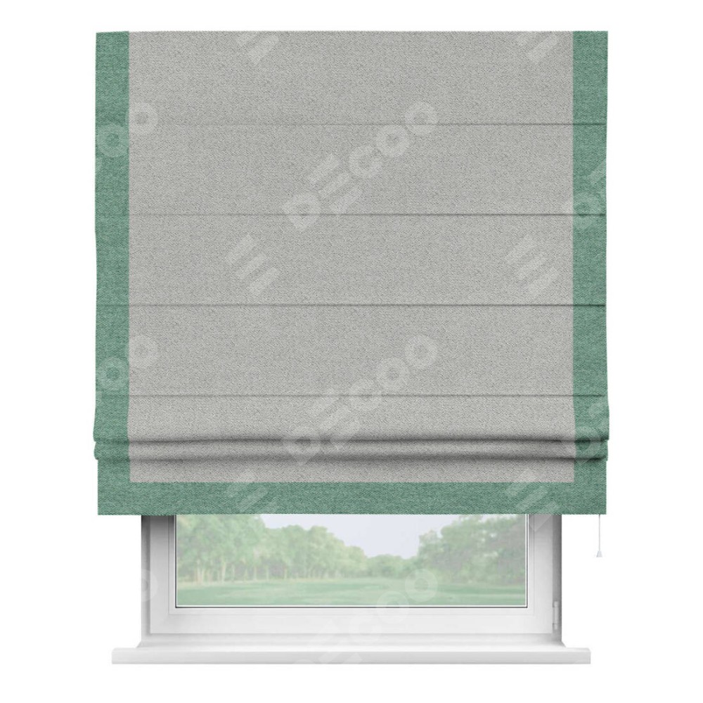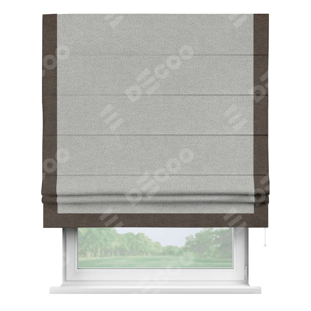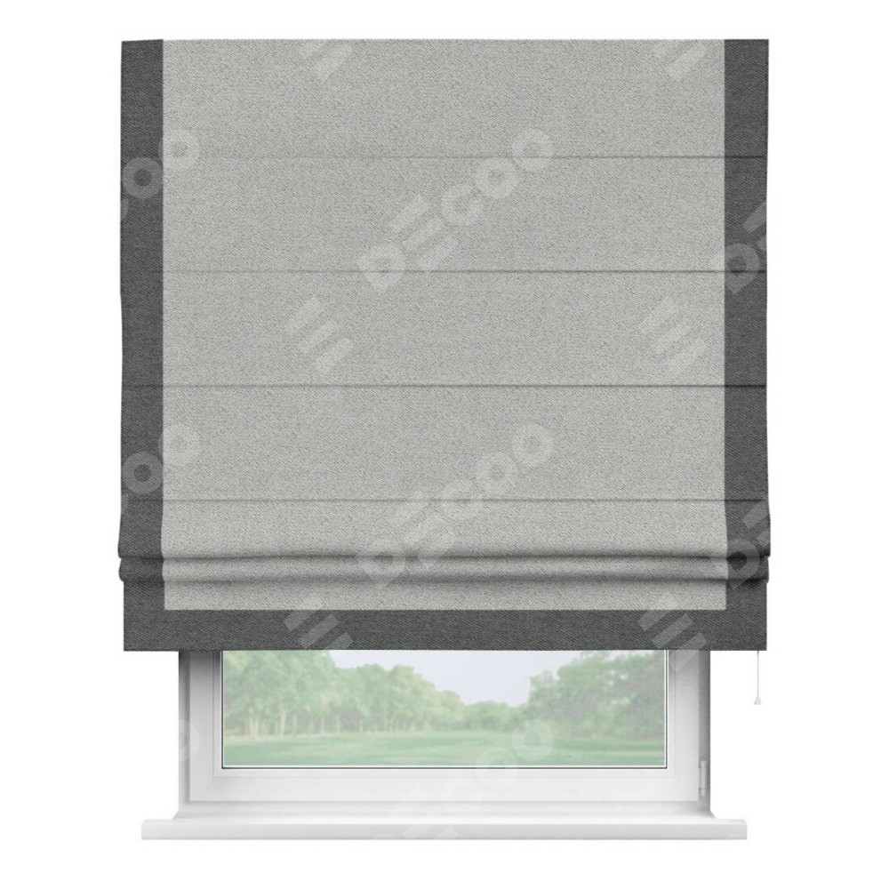 Римская штора «Кортин» для проема, твид блэкаут светло-серый, с кантом Виктория