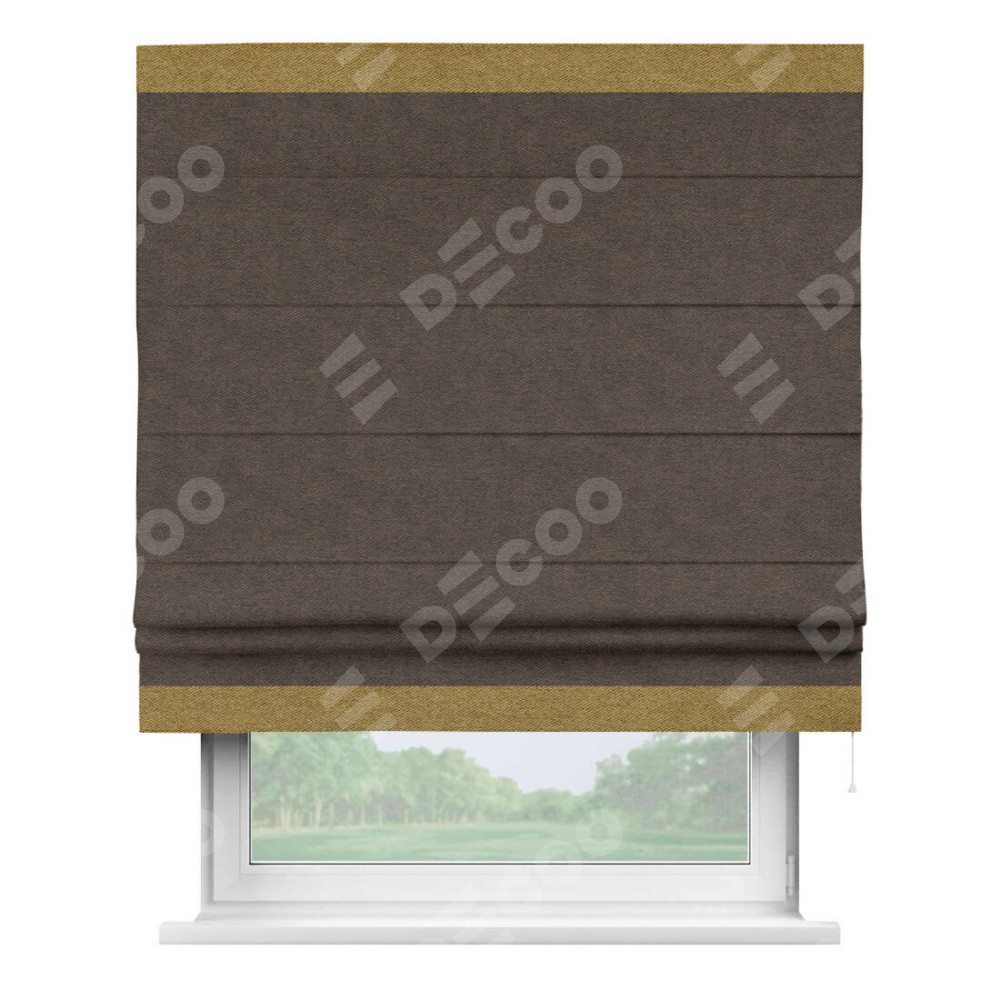 Римская штора «Кортин» для проема, твид блэкаут тёмно-коричневый, с кантом Горизонт