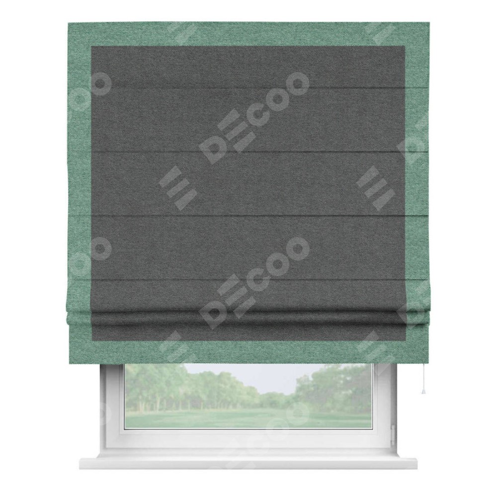 Римская штора «Кортин» для проема, твид блэкаут тёмно-серый, с кантом Чесс
