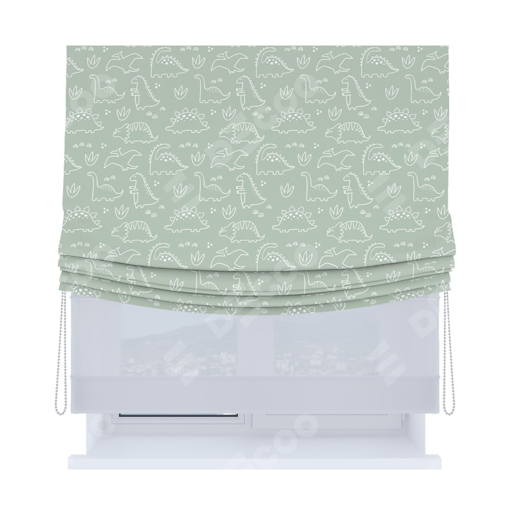 Римская штора день-ночь производителя «Cortin», используется для проёма, пошита из двух полотен, с лицевой блэкаут с нанесением сублимационной печати «Динопарк», вторая ткань тюль (по стандарту комплектуется тюль белого цвета артикул V-01). Имеет универсальный механизм и подходит для монтажа: на потолок, на стену и в нишу. Удобное управление каждой шторой отдельно.