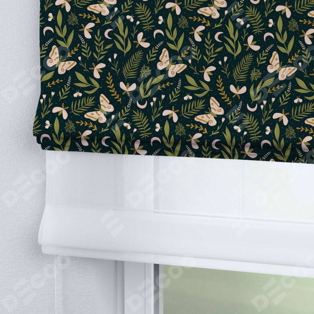 Двойная римская штора «День-ночь» от производителя Cortin предназначена для использования в проёмах. Эта штора уникальна тем, что состоит из двух полотен. На лицевой стороне находится блэкаут с нанесением сублимационной печати «Летняя ночь», обеспечивающий эффективное затемнение. В комплект также входит вторая ткань — легкий белый тюль (артикул: V-01), который добавляет изящества и легкости оформлению окна. Кроме того, доступны и другие разновидности ткани тюль, выбор которых доступен по  ссылке .